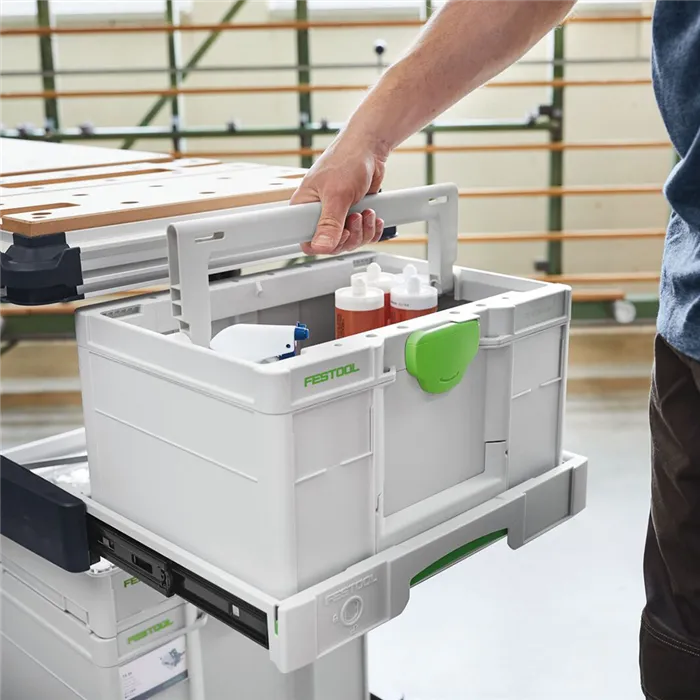 Otevřený Systainer pro rychlý přístup.Nahoře otevřený, omezený na to podstatné a koncipovaný pro rychlý přístup k ručnímu nářadí, spotřebnímu materiálu a příslušenství. A perfektně se hodí k systému Systainerů: ToolBoxy Systainer³ lze spojovat navzájem i se všemi generacemi Systainerů a mobilními vysavači.