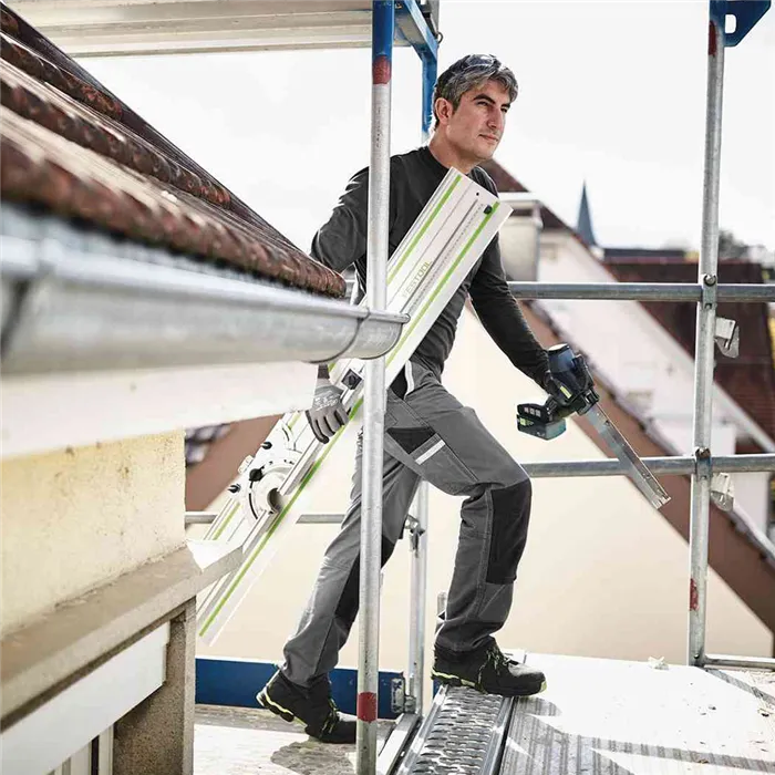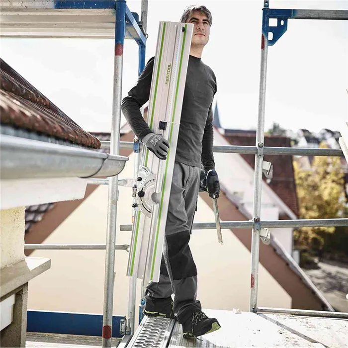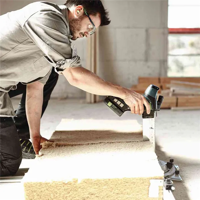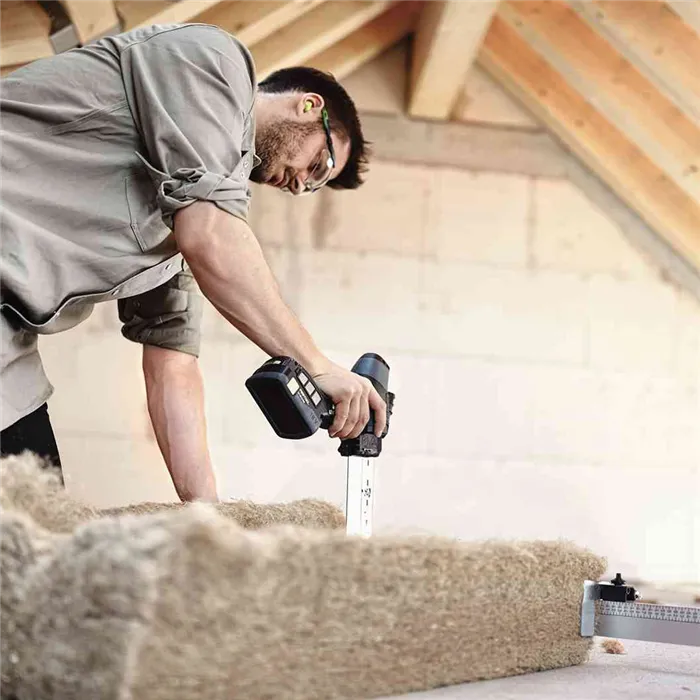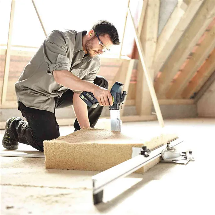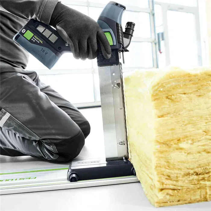Přesnost v každém úhlu.S úhlovým dorazem namontovaným na vodicí liště a akumulátorovou pilou na izolační materiály lze s přesným opakováním řezat pružné materiály. Otočný doraz lze nastavit na obou stranách až na 47°. Pomocí praktického dorazového jezdce lze rychle nastavit opakující se rozměry až 90 cm na stupnici, která je na vodicím pravítku.