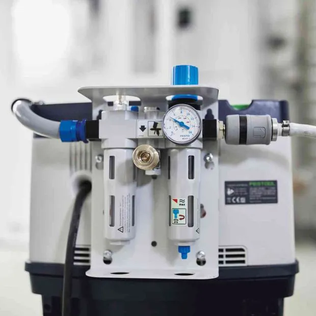 Regulátor tlaku a olejnička v jednom.Pro použití pneumatických brusek, např. LEX 3 150, je zapotřebí určitý tlak a určitý podíl oleje. K tomu je skvěle vhodná úpravná jednotka VE-CT, která současně zabezpečuje mobilní systém. Úpravná jednotka zabezpečuje smísení vzduchu s malým podílem oleje. Součásti jako lamely v pneumatické brusce jsou tak promazávané a tím je dosaženo delší životnosti připojeného pneumatického nářadí.