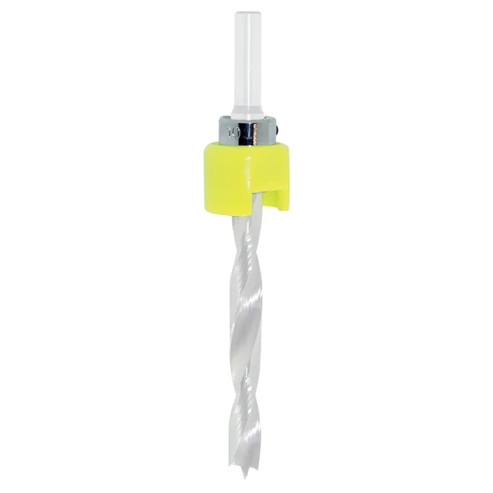 Doraz vhodný k montáži na vrták po celé délce vrtáku pomocí upínacího šroubu. Snadno nastavitelná hloubka vrtání. Vnější část dorazu je vyrobena z odolného plastu, vnitřní část z oceli. Při dosažení nastavené hloubky vrtání se plastový doraz zastaví o vrtaný materiál a nedojde tak k poškrábání materiálu.