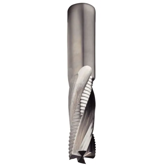 Speciální 4-spirálový design ostří. 2 hrubovací a 2 dokončovací spirály dávají mimořádně čistou hranu řezu při použití vysokých posuvů.