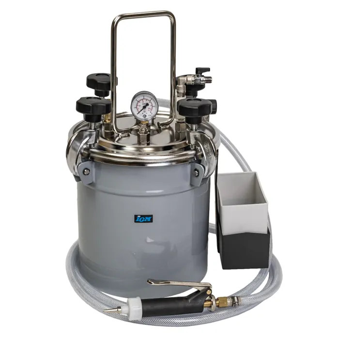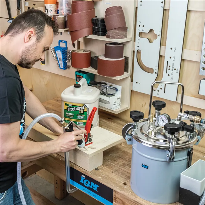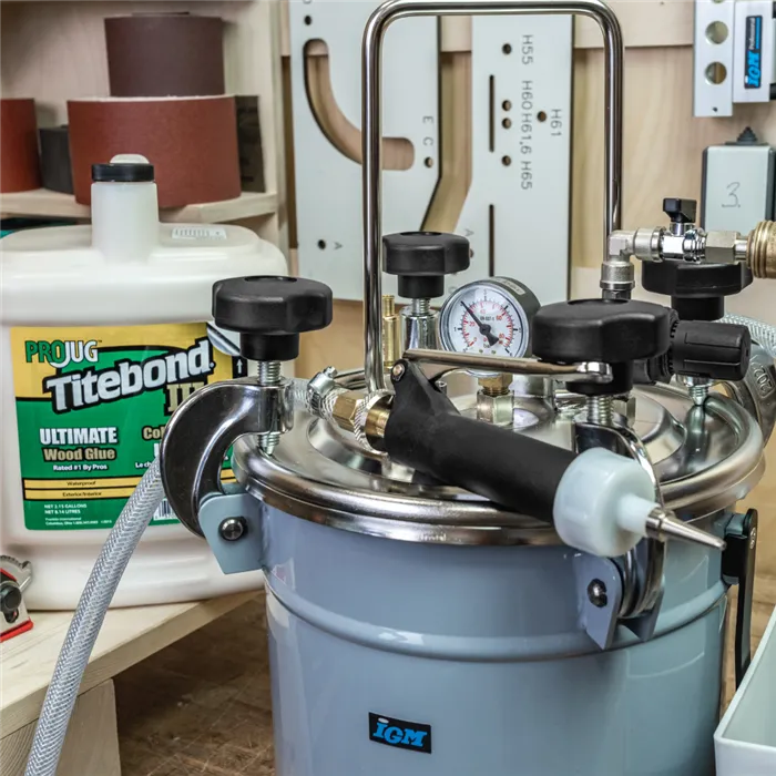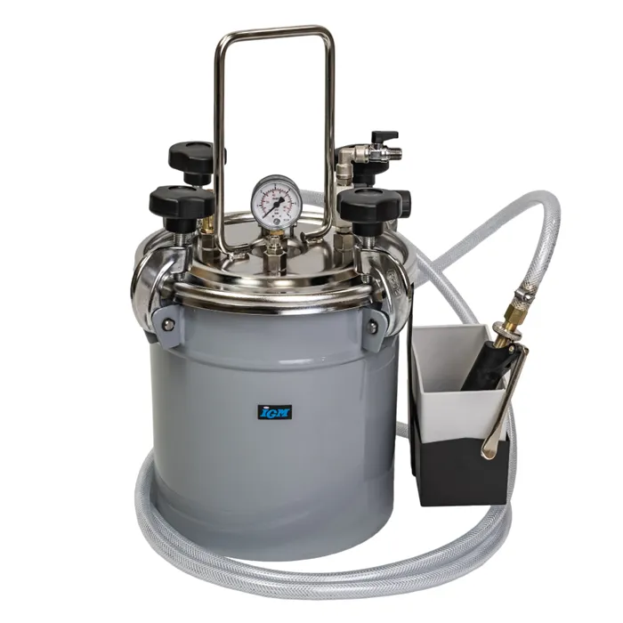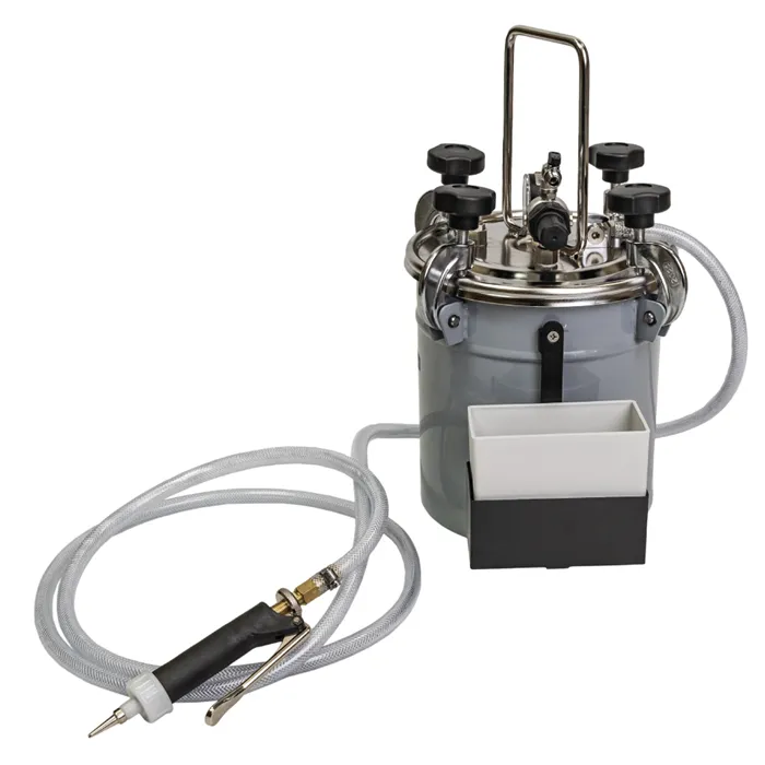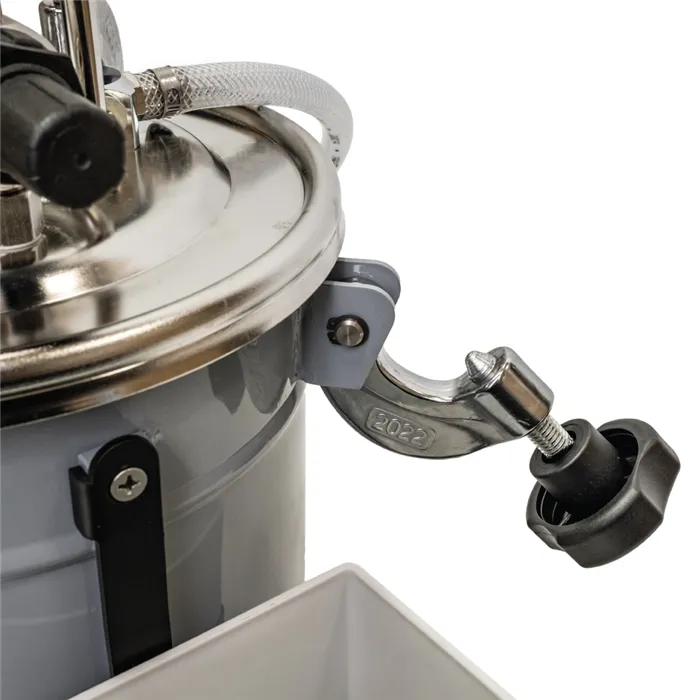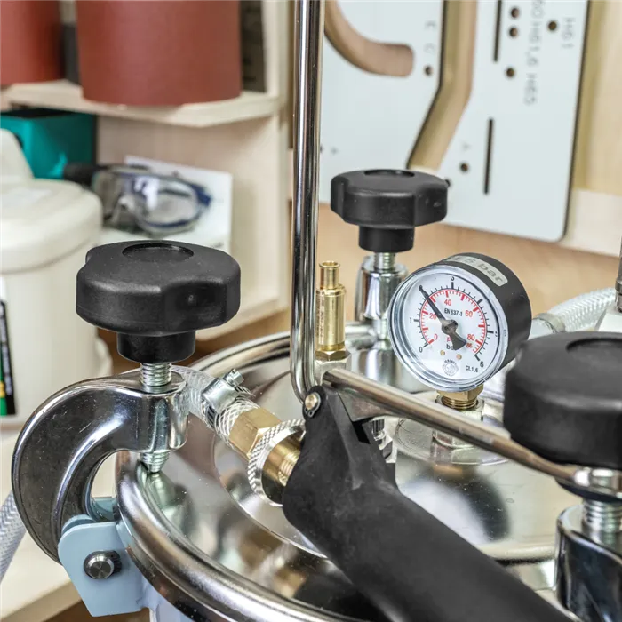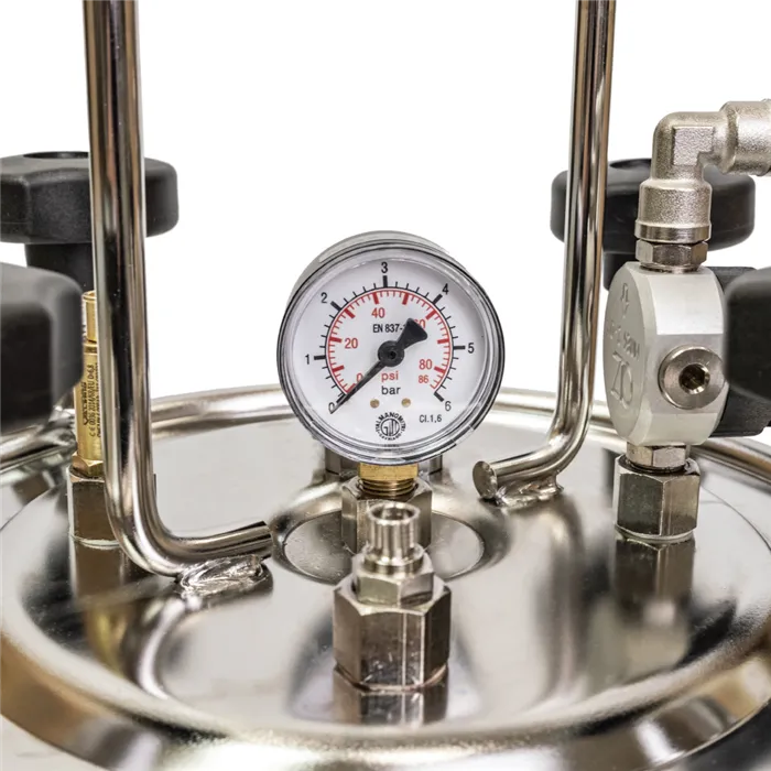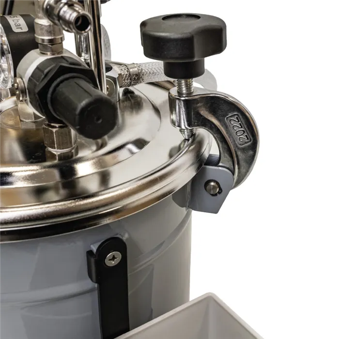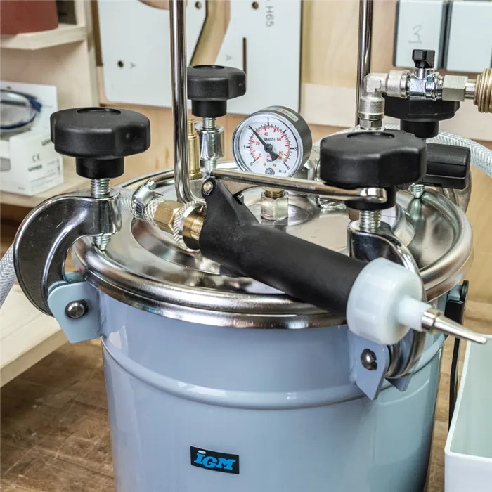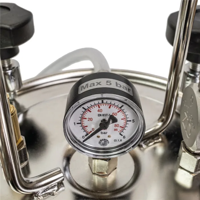 Malý nerezový dávkovač PVA lepidel.Díky menší velikosti lze používat i na montáže.Pro menší a střední truhlářské dílny nebo nábytkové výroby.• Tlaková nádoba: Nerez• Kapacita náplně: 5 kg• Maximální tlak: 5 bar• Hmotnost: 11 kg• Rozměry (D x Š x V): 30 x 30 x 52 cmKvalitní a bezproblémové tlakové dávkovače lepidla razantně snižují pracovní čas při lepení nebo stříkání lepidel a barev v porovnání s klasickým způsobem aplikace. Jsou určeny pro disperzní vodou ředitelná lepidla (PVA) pro vysokopevnostní spoje dřeva. Se speciální dávkovací nebo stříkací pistolí lze stříkat lepidla a barvy na bázi rozpouštědel, či vodou ředitelná. Dávkovače jsou spolehlivé, efektivní a snadno se udržují. V nabídce je široké množství nástavců a trysek pro lepení kolíkových, čepových nebo lamelových spojů, pro drážky, na plochy a mnoho dalších řešení.• Přesné, rychlé a úsporné nanášení lepidla.• Plynulá a konstantní aplikace lepidla.• Nerezová kvalitní tlaková nádoba.• Masivní upínací systém víka s kovovými třmeny dle CE.• Dávkovací pistole s nastavením množství průtoku lepidla.• Dosah pistole s hadicí do 3 m.• Široká nabídka nástavců a trysek.Jsou vybaveny tlakovým ventilem, manometrem, precizním uzamykacím systémem a odkládací kapsou na pistoli. Součástí dodávky je jedna aplikační pistole s nastavitelným množstvím lepidla. Lze je dovybavit celkem až 3 dávkovacími pistolemi. Aplikace lepidla je plynulá a konstantní, nedochází k přerušení dávky lepidla jako při ruční aplikaci. Po naplnění nádoby lepidlem, uzavřete víko a nádobu natlakujete na maximálně 5 bar. Můžete odpojit od kompresoru. Dávkovač pracuje až do tlaku 1 - 0,5 bar. Potom musíte znovu nádobu natlakovat. Široká nabídka volitelných aplikačních nástavců a trysek.
