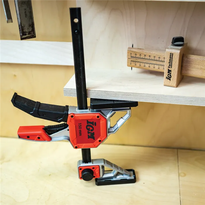 • IGM Rychloupínací svěrka s čelistmi z hliníku.• Čelisti 95 mm hluboké.• Velké podložky 90x36 mm.• Možnost stahování a rozpínání.IGM ALU Rychloupínací svěrka je určená pro profesionály i kutily, kteří potřebují ve své dílně robustní truhlářskou svěrku pro větší zatížení. Čelisti svěrky s hloubkou 95 mm jsou vyrobené z hliníku a mají velké podložky o rozměru 90x36 mm z měkkého plastu. Vodící tyč 6x19 mm je vyrobena z uhlíkové oceli. Svěrka je vybavena páčkou pro rychloupínání a odnímatelnou čelistí pro přeměnu na rozpěrku pomocí otočného tlačítka. Maximální upínací síla až 140 kg.Dostupné v několika velikostech. Varianty: 150 mm, 450 mm, 600 mm