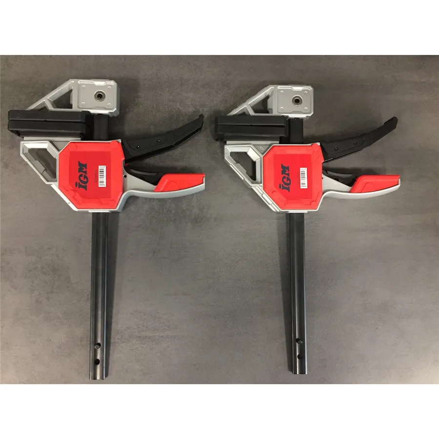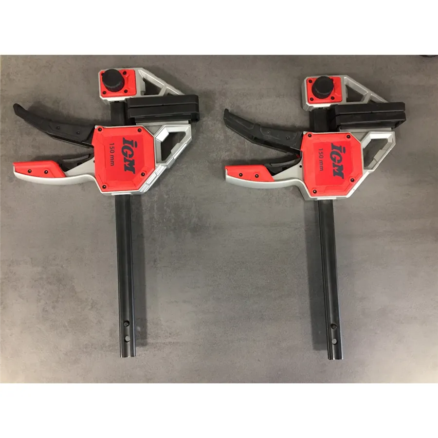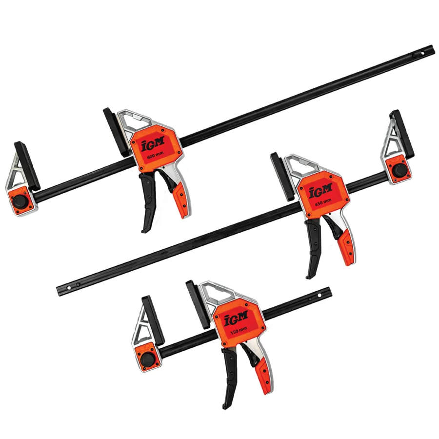 IGM ALU Rychloupínací svěrka je určená pro profesionály i kutily, kteří potřebují ve své dílně robustní truhlářskou svěrku pro větší zatížení. Čelisti svěrky s hloubkou 95 mm jsou vyrobené z hliníku a mají velké podložky o rozměru 90x36 mm z měkkého plastu. Vodící tyč 6x19 mm je vyrobena z uhlíkové oceli. Svěrka je vybavena páčkou pro rychloupínání a odnímatelnou čelistí pro přeměnu na rozpěrku pomocí otočného tlačítka. Maximální upínací síla až 140 kg.