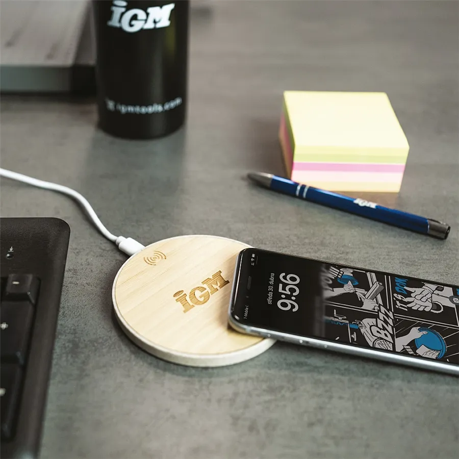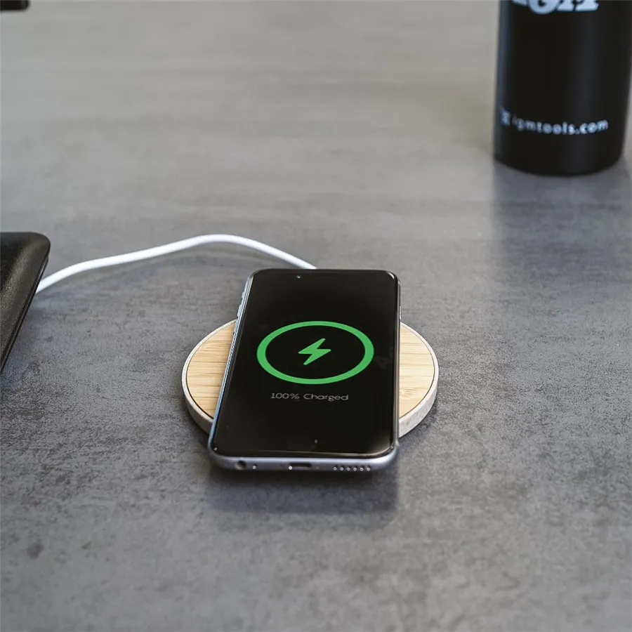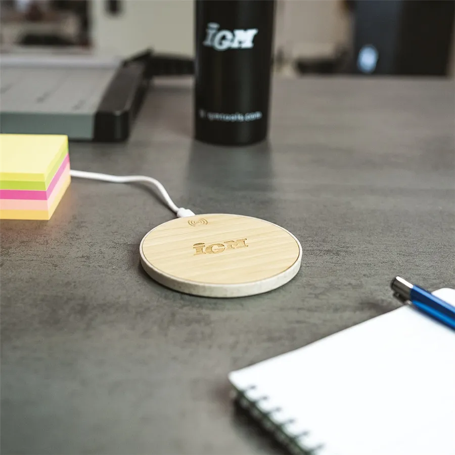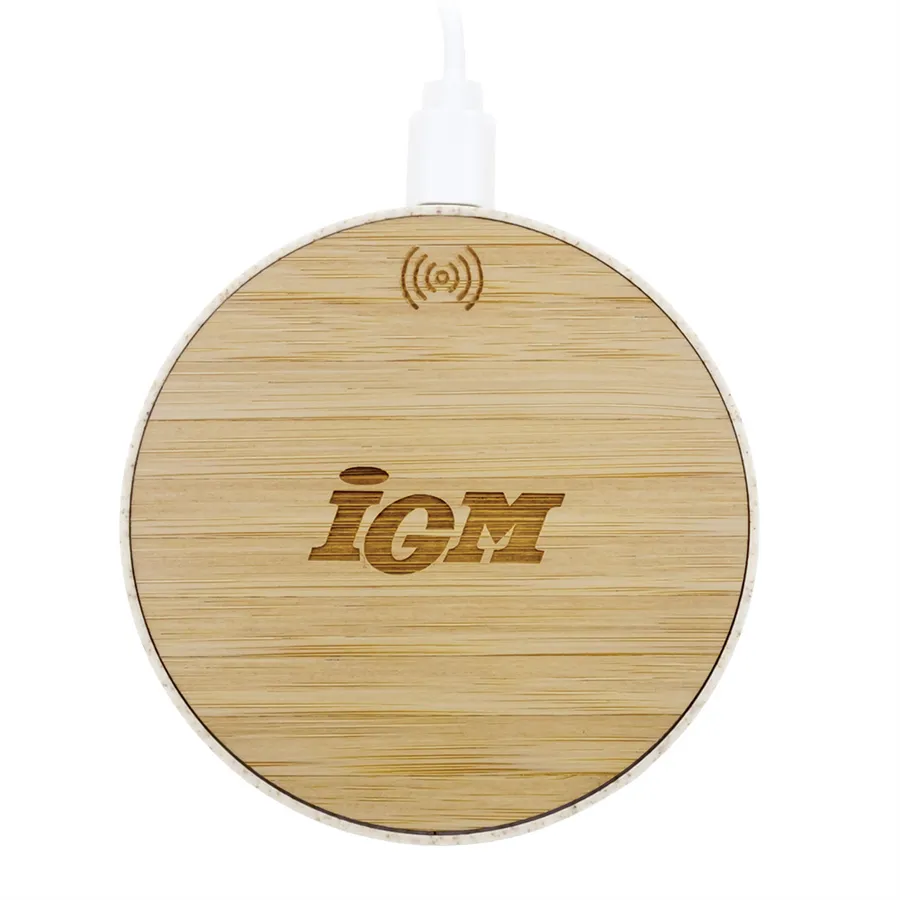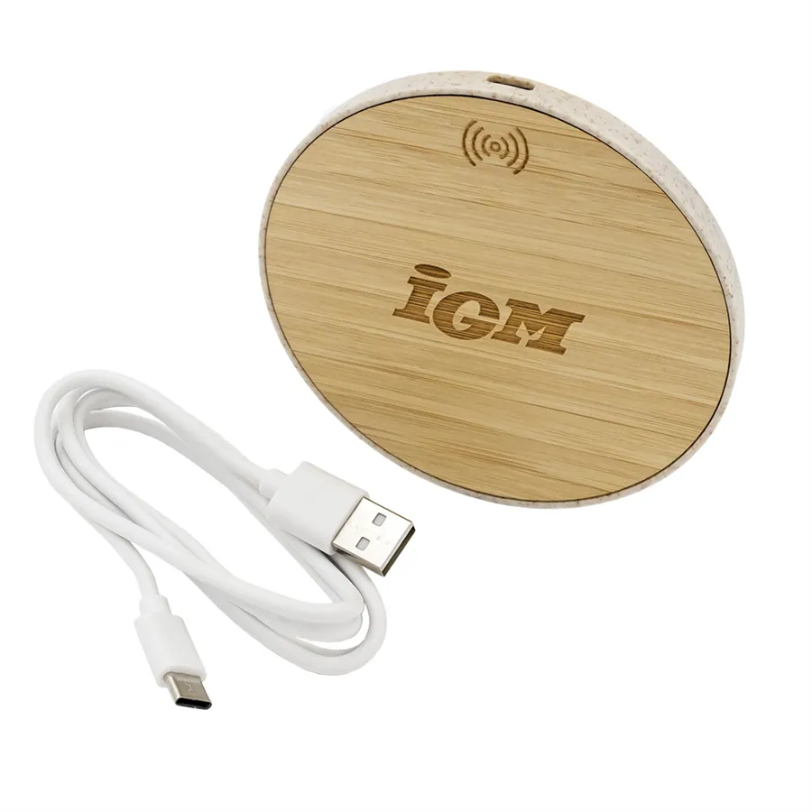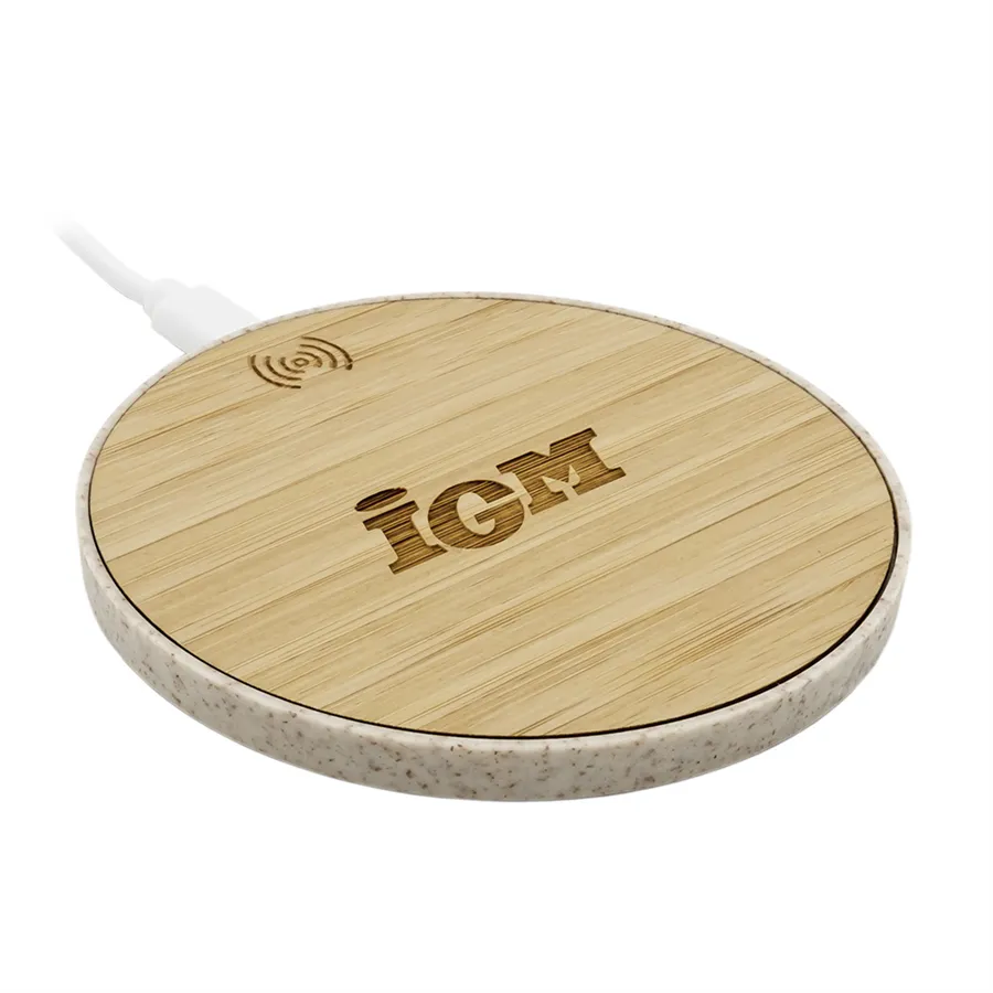 Bezdrátová rychlonabíječka (15W) v ekologickém plastovém krytu z pšeničné slámy a bambusu. Včetně USB nabíjecího kabelu.