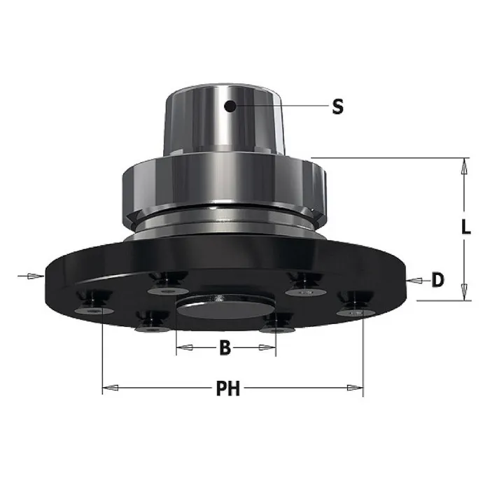 • Maximální průměr kotouče 350 mm• Nepřekračujte maximální otáčky uvedené na kotoučiTyp upínače: HSK-F63Průměr hlavy: 110 mmPracovní výška hlavy: 40 mmStředový otvor : 30mmUpínací CNC hlava pro pilové kotouče. Ideální pro drážkování nebo formátování pomocí CNC.Upínání pomocí 6 šroubů M6 s roztečí 80mm a pilový kotouč s vnitřním otvorem 30mm.