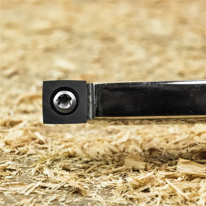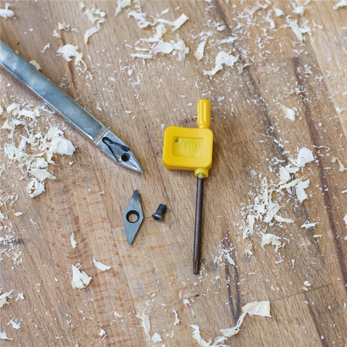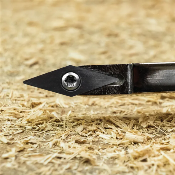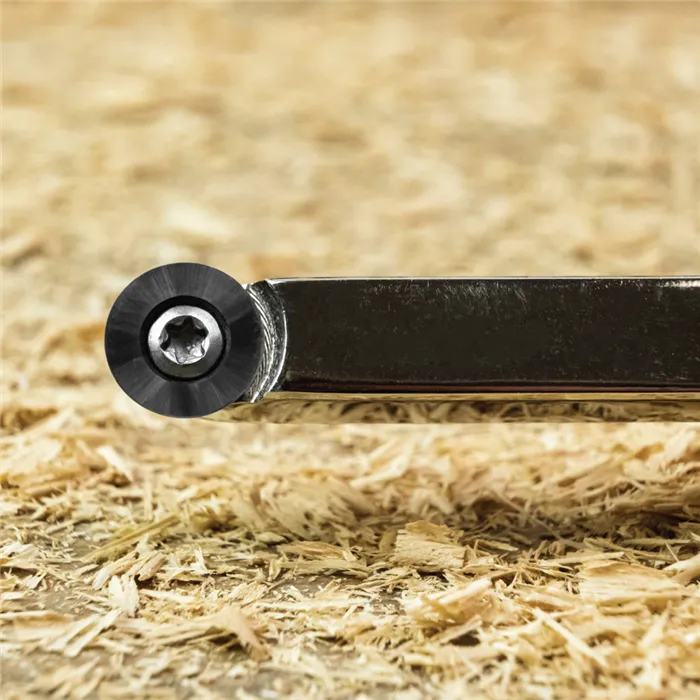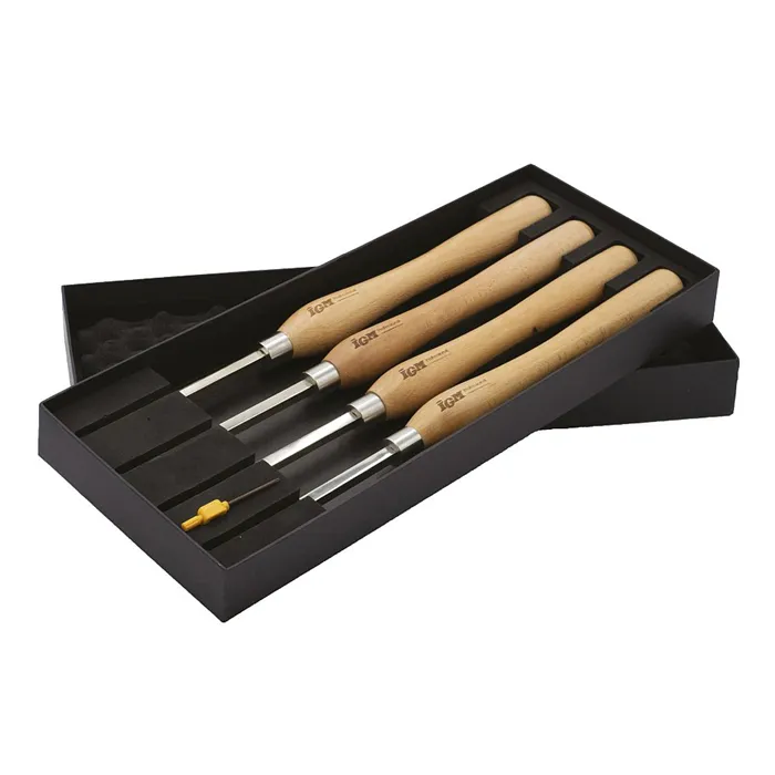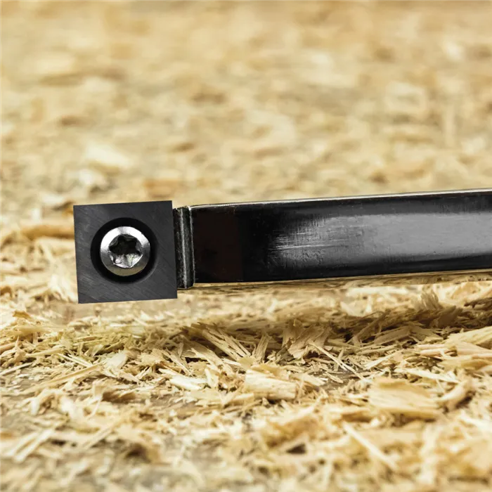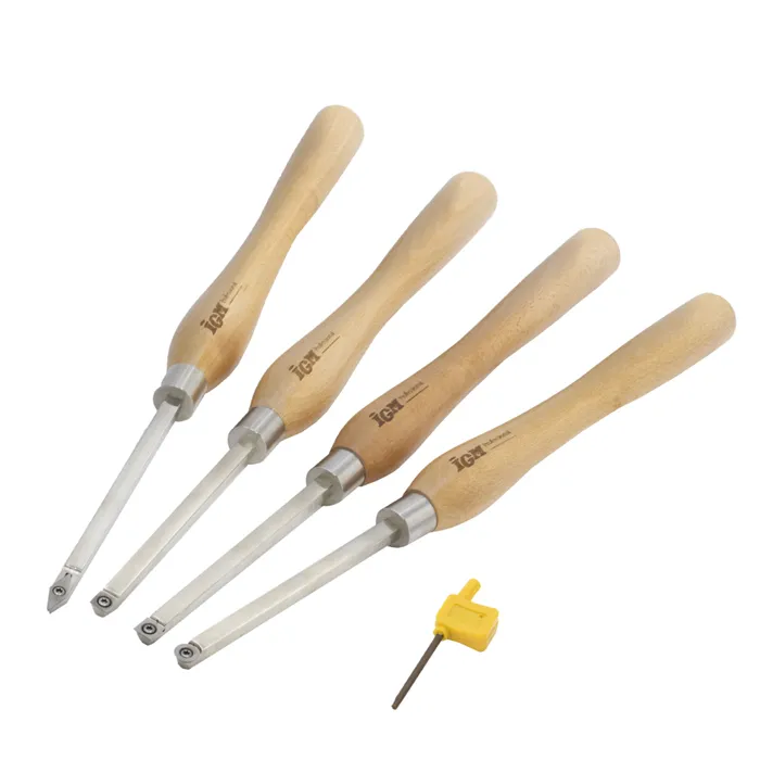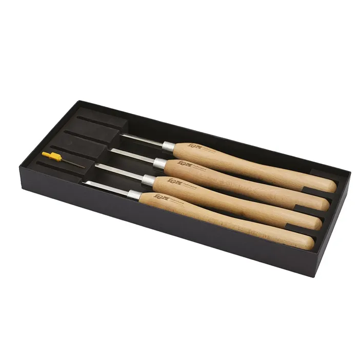IGM Sada soustružnických dlát s výměnnými břity obsahuje 4 dláta se čtyřmi typy břitů – čtvercový, čtvercový zaoblený, kulatý a diamantový. Čtvercový se používá k hrubování materiálu a vytváření čepů, s čtvercovým zaobleným můžete také hrubovat materiál a vytvářet zaoblené čepy. Kulatý břit se hodí pro hrubování nebo soustružení křivek. Diamantovým břitem pak vysoustružíte drážky a jiné ozdobné detaily. Břity jsou vyrobeny z tvrdokovu s velmi vysokou životností a nemusí se ostřit. Pokud se hrana opotřebuje, stačí břitem pootočit. Jakmile je hrana po celém obvodu tupá, břit vyměňte.