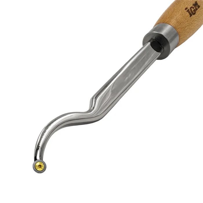 • Soustružení dutých nádob.• Snadné a stabilní soustružení.• Tvrdokovový otočný břit.• Masivní buková rukojeť a pochromovaný ocelový krk.IGM Chrome Soustružnické dláto na dutiny slouží k soustružení dutých nádob, které je potřeba vyhloubit skrz úzké hrdlo (mísy, vázy, poháry). Dláto je vhodné jak pro začátečníky, tak i zkušené soustružníky. K výběru jsou 3 typy dlát – rovné, zahnuté a silně zahnuté. Každé z těchto dlát Vám umožní určitý úhel vyhloubení.Plochá hrana pochromovaného ocelového krku, kterou lze opřít o opěrku soustruhu, a masivní ergonomická rukojeť z bukového dřeva Vám poskytne snazší a stabilnější soustružení. Břit je vyrobený z tvrdokovu s vysokou životností a nemusí se ostřit. Pokud se hrana opotřebuje, stačí břitem pootočit. Jakmile je hrana po celém obvodu tupá, břit vyměňte. Tyto dláta vytváří velmi hladký povrch, který nevyžaduje komplikované broušení.• Délka rukojeti: 395 mm• Celková délka: 565 mm