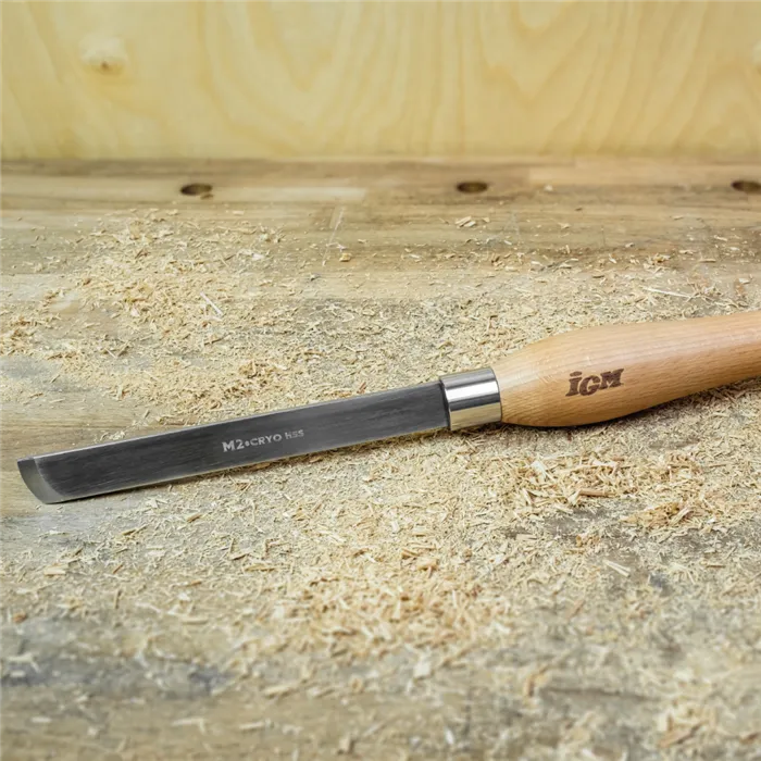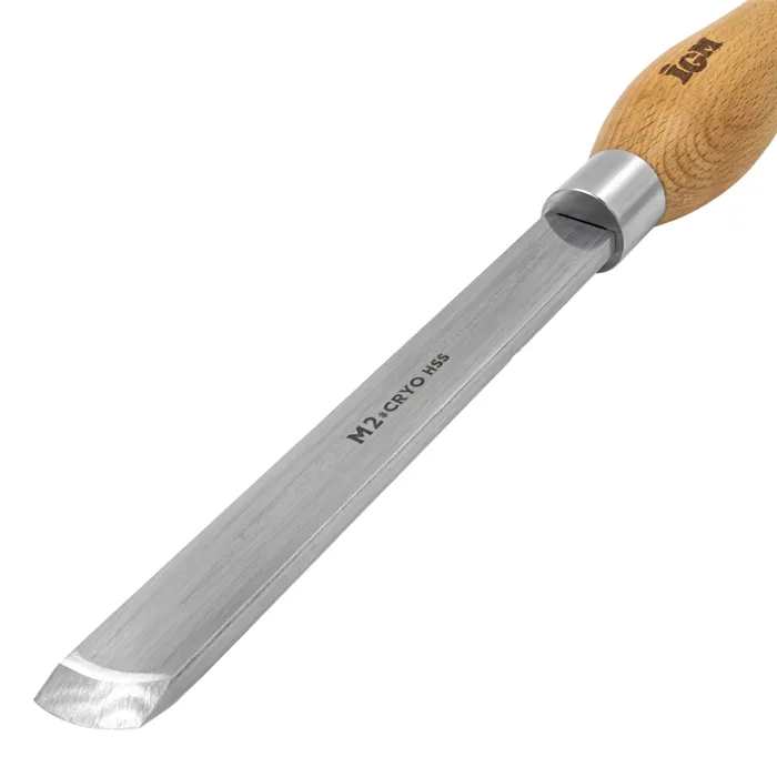 IGM Cryo Soustružnické dláto hladící zaoblené se používá pro začišťování i tvorbu detailů. Je vhodné jak pro začátečníky, tak i zkušené soustružníky. Čepel 20x170 mm z HSS oceli M2 je kryogenicky zpracovaná, což zaručuje dlouhou životnost a mnohonásobně vyšší zachování ostří než u běžných dlát. Kryogenicky zušlechtěná ocel M2 na tvrdost 63-65 HRC je velmi odolná proti vysokým teplotám a nespálí se ani při soustružení velmi tvrdých, vysušených dřevin. Masivní ergonomická rukojeť z bukového dřeva je pevná pro komfort a jistotu při práci.