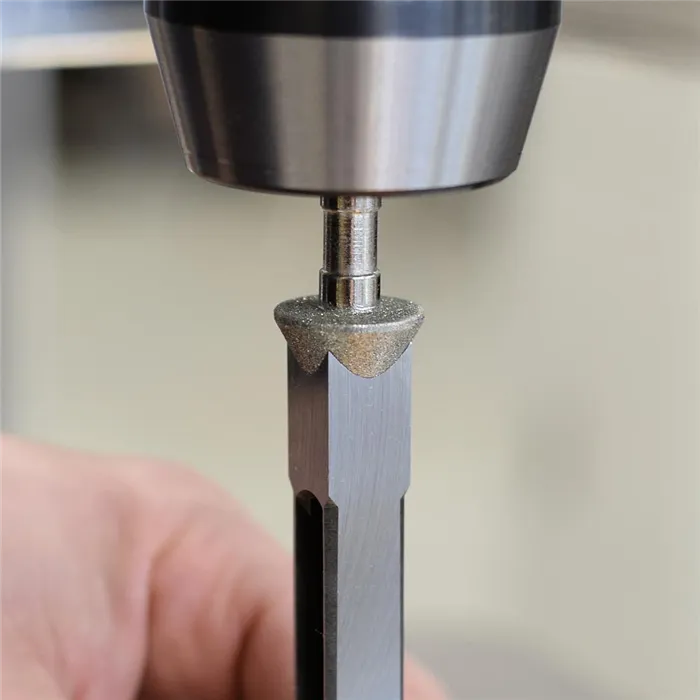 Tento speciálně vyrobený diamantový kuželový brousek doporučujeme pro většinu CMT a IGM japonských ostrohranných dlabacích vrtáků a pro čtvercová dláta Veritas.