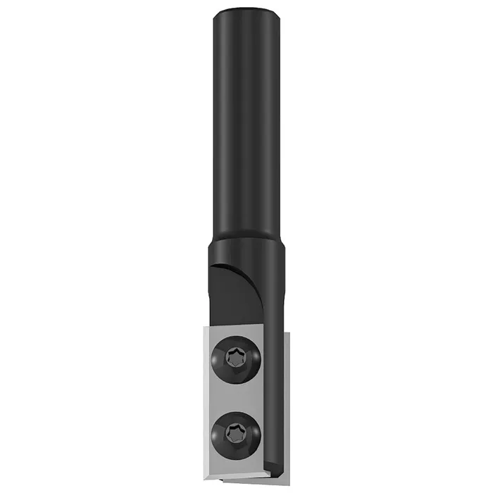 Drážkovací stopková fréza se dvěma otočnými žiletkami naostřenými na 4 stranách. Výměnné žiletky mají závrtnou část zkosenou pod úhlem 3 stupně, což usnadňuje postupné zavrtávání do materiálu. Řez je hladký, bez otřepů a rýh. Tyto frézy jsou určeny pro ořezávání, formátování a drážkování. Pro přímé zavrtávání použijte typ F044.