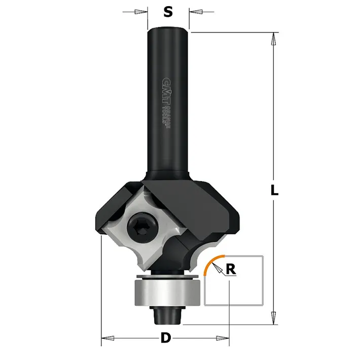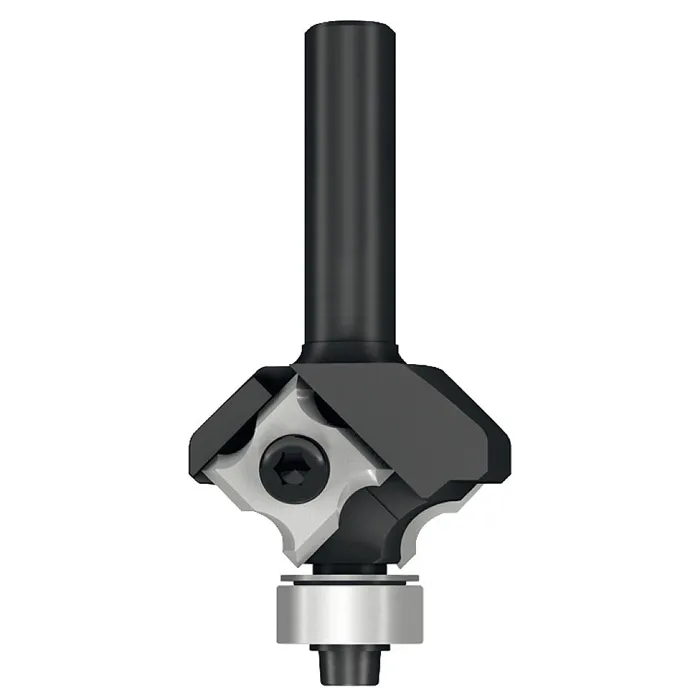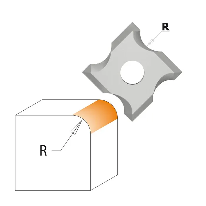 • Výměnné žiletky z mikrozrnného tvrdokovu. • Žiletky můžete otočit o 90° a získáte tím celkem 4 řezné hrany. • Žiletky jsou upevněny speciálními Torx šrouby. • Tělo frézy vyrobeno z kvalitní oceli. Žiletková fréza osazená dvěma trvdokovovými žiletkami pro zaoblení hran. Radius je vybroušen na všech 4 stranách žiletky pro maximální efektivitu nástroje. Fréza je osazena žiletkou s radiusem R3mm nebo R2mm, který se používá zejména na ABS hrany. K fréze je možné dokoupit i radius R1mm a R1,5 mm, kterým můžete srazit hranu při lepení umakartu, dýhy nebo lamina na deskách. Pro použití na ručních horních frézkách.