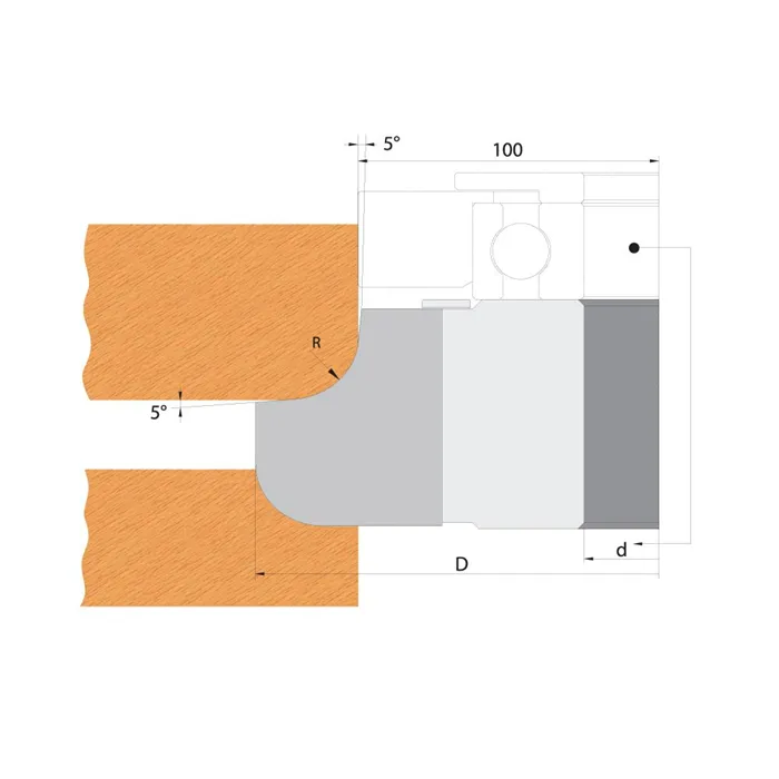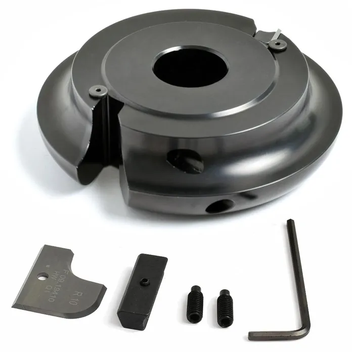 Fréza se používá pro vytváření vnitřních a vnějších radiusů- zaoblení. Fréza je osazena dvěma radiusovýma žiletkama s vydutým a vypouklým radiusem R10. Další radiusy lze doobjednat. Pro zaoblování a profilování hran desek a dílů z měkkého a tvrdého dřeva. Pro frézování zakřivených dílů je možné k fréze osadit kopírovací ložisko. Upínací průměr d=30 mm.Technické údaje: • Robustní tělo z hliníkové slitiny.• 2 HM žiletky – rádius 4 mm vypouklá / vydutá (25x23x2 mm).• Určeno pro ruční posuv MAN.• Kolíky pro snadné usazení žiletek.• Lze přiobjednat další rádiusy.Parametry: Zuby 2, otáčky 6400–10500 ot./min., ruční posuv materiálu MAN.