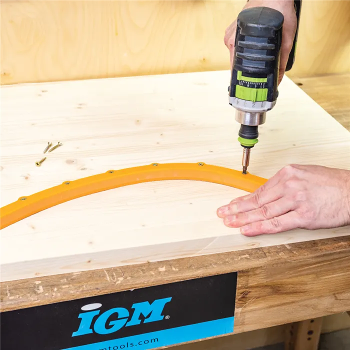 Pro rychlou a snadnou výrobu oblouků, tvarových lišt, stolů a podobně.Vynikající přípravky pro rychlé a přesné vytvoření šablony pro tvarové frézování. Jsou vyrobeny z flexibilního materiálu, který můžete vytvarovat do požadované podoby a poté jej vruty připevníte k budoucí šabloně. Šablonu připevníte k obráběnému dílci a pomocí kopírovacího ložiska na stopkové fréze nebo frézovací hlavě kopírujete požadovaný tvar.