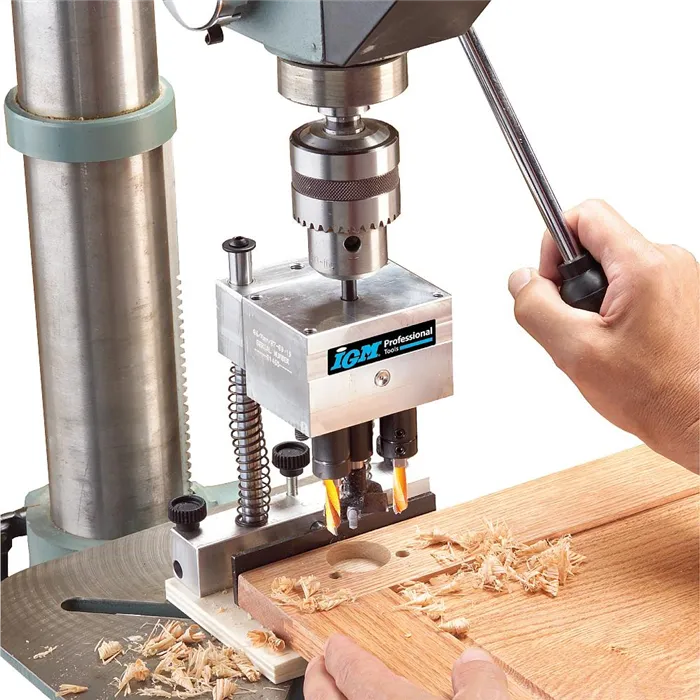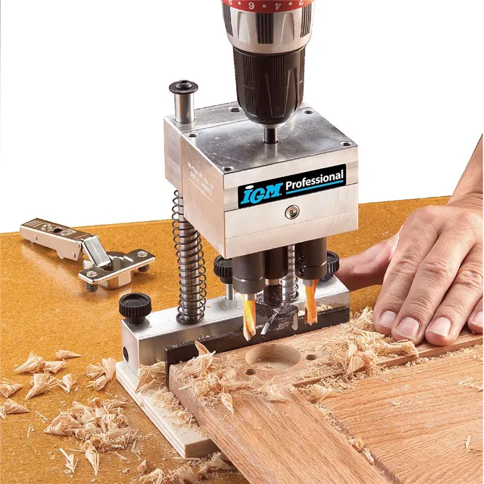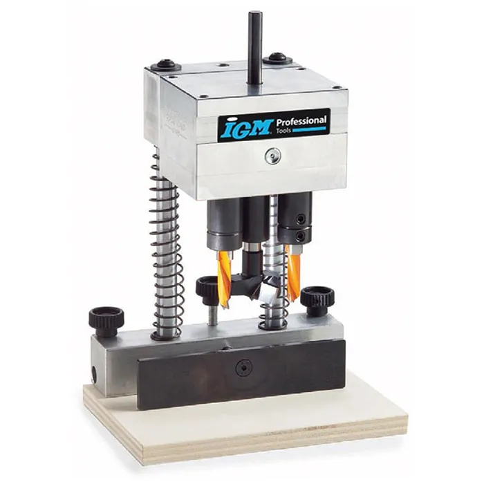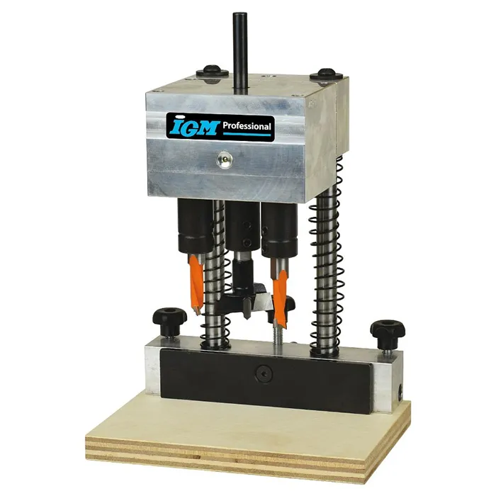 Revoluční vrtací přípravek se skládá ze stojanu a 6 typů vrtacích hlav, které lze na stojan namontovat. Můžete tak vrtak otvory pro závěsy Hettich, Blum, Mepla, Grass, pro okenní kliky nebo použít hlavu s 5 vřeteny s roztečí 32 mm pro vrtání děr pro kolíky či nosiče polic. Použití s ruční vrtačkou nebo na stojanových vrtačkách. Pro mazání použijte olej Mobil SHC100.Samostatný FMB300 modulární stojan pro vrtací hlavy, vrtací hlavy je nutné dokoupit jako příslušenství.Součástí balení je modulární stojan balený v plastovém kufru.