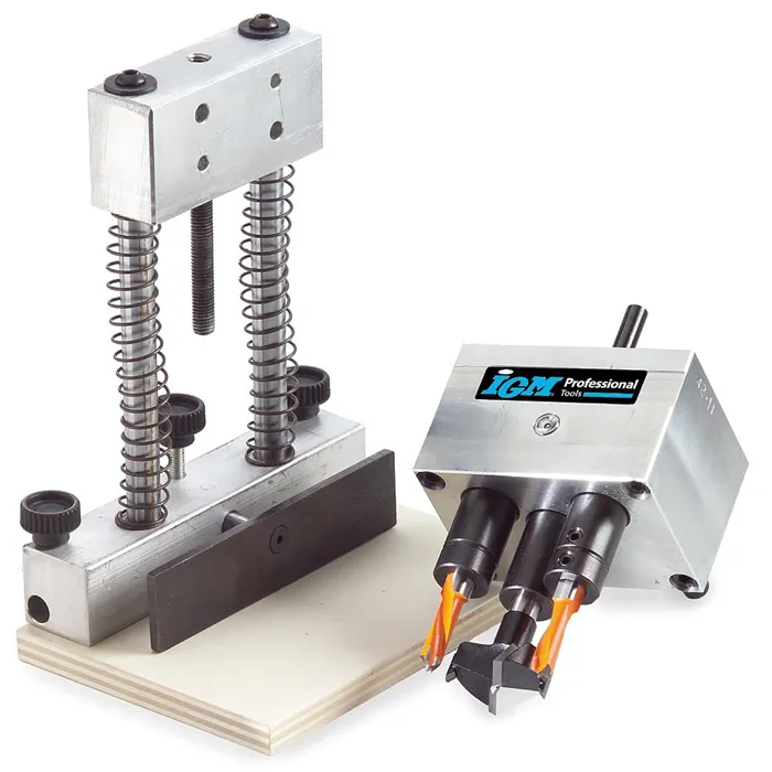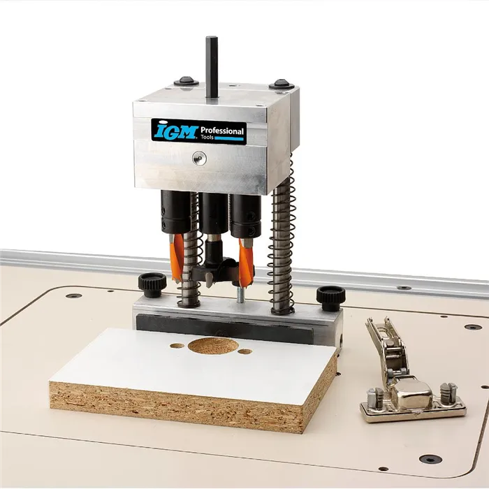 Revoluční vrtací přípravek se skládá ze stojanu a 6 typů vrtacích hlav, které lze na stojan namontovat. Můžete tak vrtak otvory pro závěsy Hettich, Blum, Mepla, Grass, pro okenní kliky nebo použít hlavu s 5 vřeteny s roztečí 32 mm pro vrtání děr pro kolíky či nosiče polic. Použití s ruční vrtačkou nebo na stojanových vrtačkách. Pro mazání použijte olej Mobil SHC100.Samostatný FMB300 modulární stojan pro vrtací hlavy, vrtací hlavy je nutné dokoupit jako příslušenství.Součástí balení je modulární stojan balený v plastovém kufru.