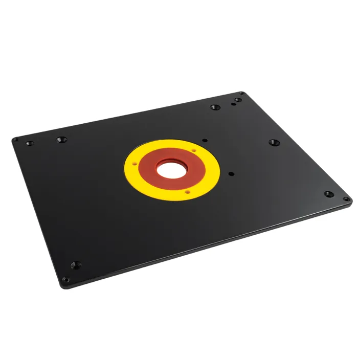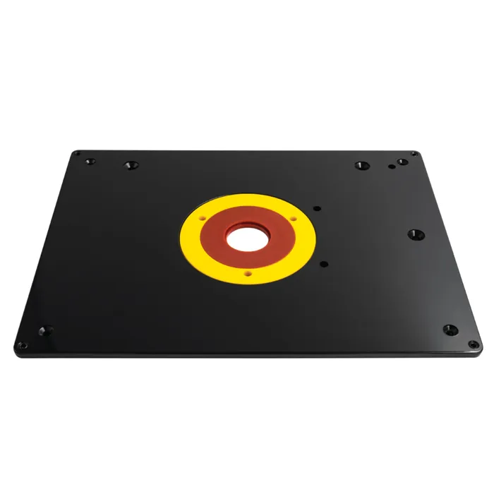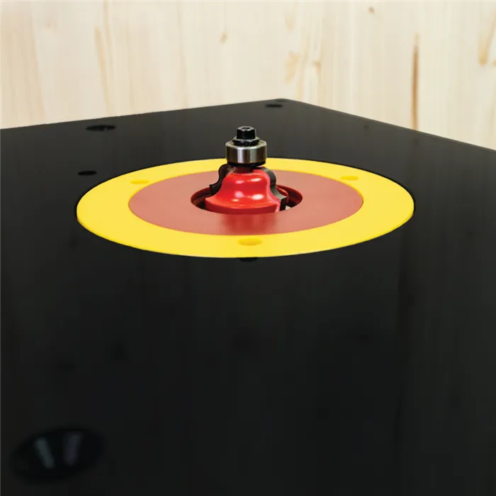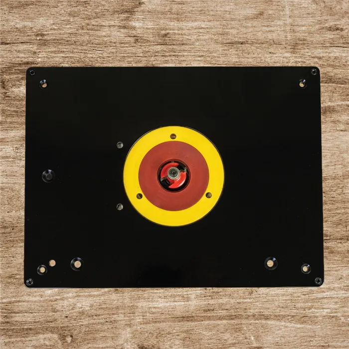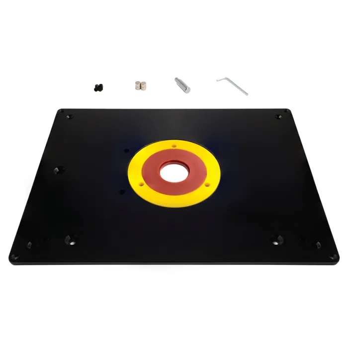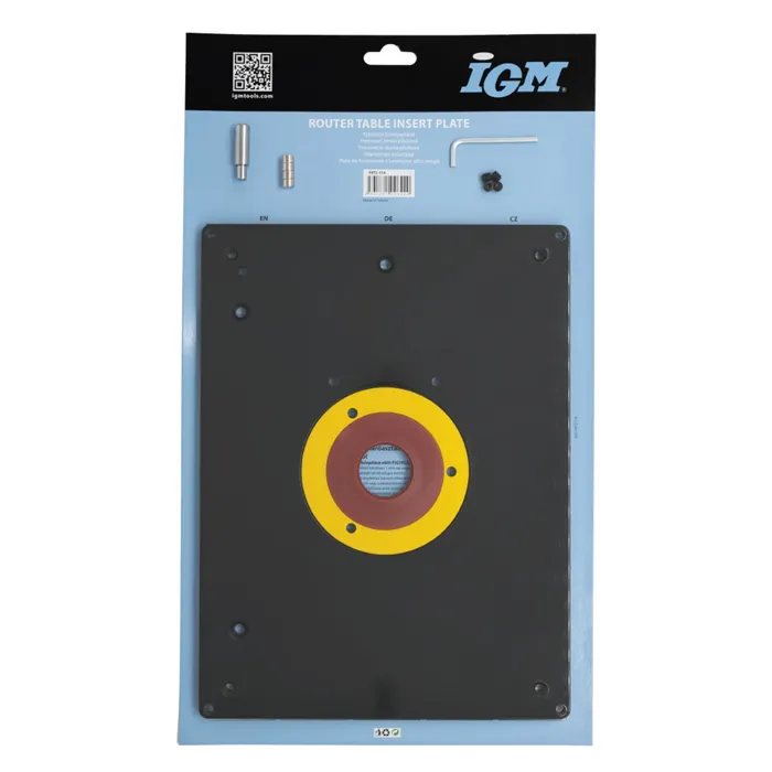 Tato středová frézovací deska poskytuje pevnou a stabilní plochu pro upnutí Vaší horní frézky do Vámi vyrobeného frézovacího stolku nebo desky pracovního stolu, ponku či hoblice.Středová frézovací deska je bez otvorů pro upnutí horní frézky a je vyrobena z 6 mm hladkého plastu v černé barvě. Je vybavena 4-mi vyrovnávacími šrouby pro ustavení do roviny s pracovní deskou frézovacího stolku. Dodávaná se 2-mi odjímatelnými středovými kroužky pro upnutí různých velikostí stopkových fréz o průměru do 30 mm, do 66 mm. Maximální středový otvor desky je 98 mm. Pomocí přiloženého kopírovacího kolíku můžete volně frézovat jakékoliv tvary. Rozměry středové desky jsou 306 mm x 229 x 6 mm.Pro upnutí frézky je nutno do středové desky vyvrtat upínací otvory pro šrouby.