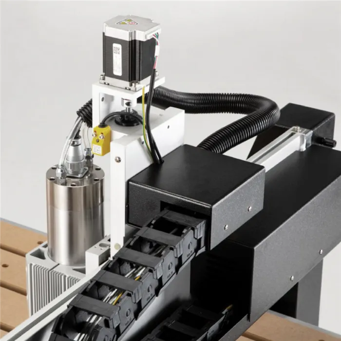 Namísto běžných vzduchem chlazených vřeten má frézka i2R řady A výkonné 2200 W vřeteno chlazené kapalinou, což nejenže zvyšuje jeho životnost, ale především výkon. Díky výkonnému chlazení a kvalitním krokovým motorům s vysokým kroutícím momentem může tato CNC frézka pracovat bez přerušení celý den.
