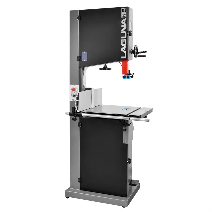 Pásová pila IGM Laguna 18BX je vybavena těžkým stabilním rámem a silným 2,2 kW asynchronním motorem. Broušený pracovní litinový stůl o rozměrech 660 x 508 mm poskytuje stabilitu i při řezání větších dílců. Stůl lze naklopit v rozmezí od -7° do +45°. Masivní vysoké podélné pravítko s čepovacím dorazem je snadno nastavitelné a lze nainstalovat do dvou pozic (vertikálně a horizontálně). Pevná litá kola jsou vyvážená a opatřena polyuretanovým páskem po celém obvodu kola. Pásek je navržen tak, aby zvládal vyšší teplotu a vydržel déle než běžné pryžové výplně kol. Šnekový převod horního vedení pásu zaručuje maximální stabilitu i při nejvyšší výšce řezu. Pro okamžité zastavení pily je spodní kolo vybaveno kotoučovou brzdou, která se aktivuje sešlápnutím pedálu.