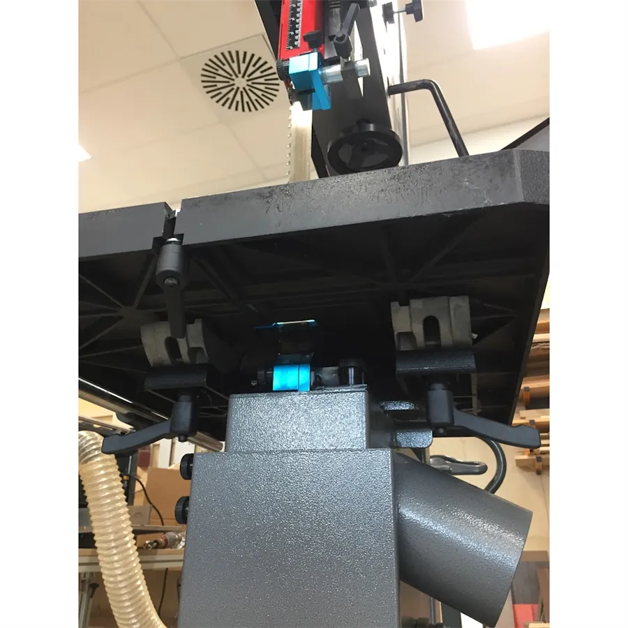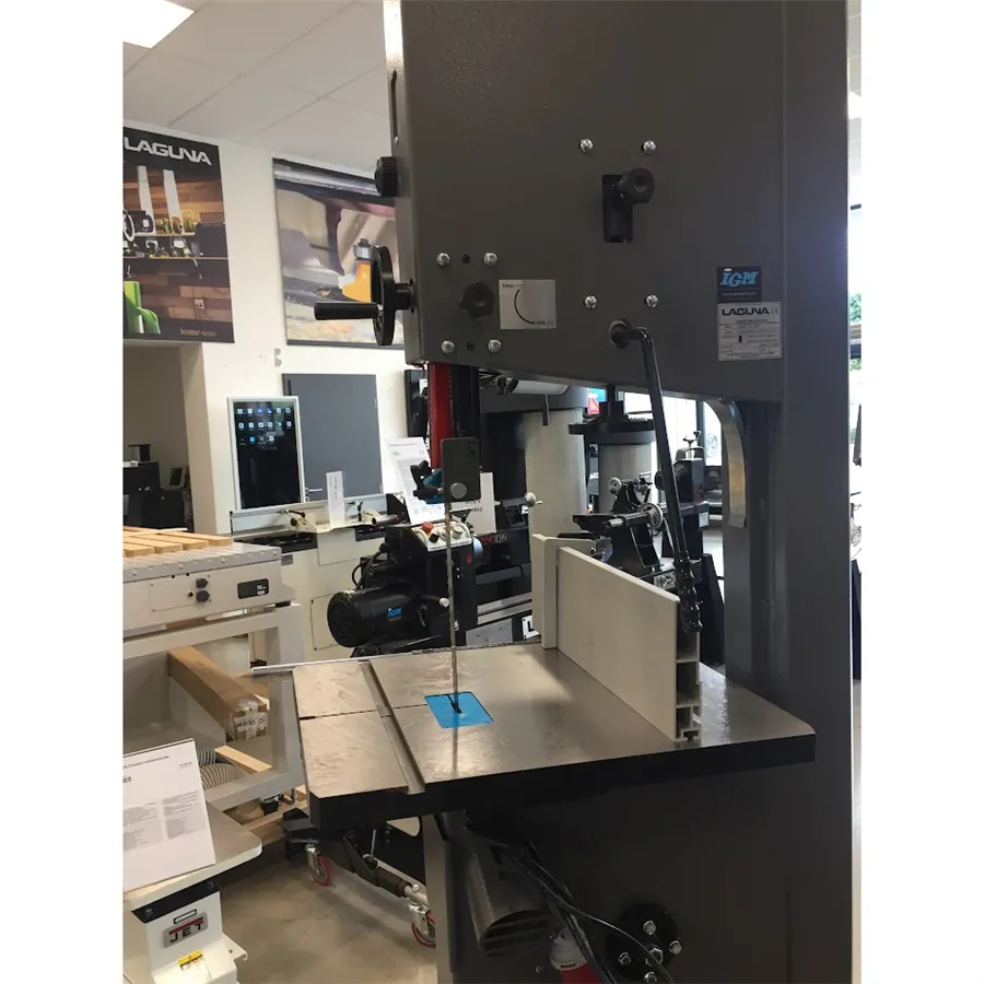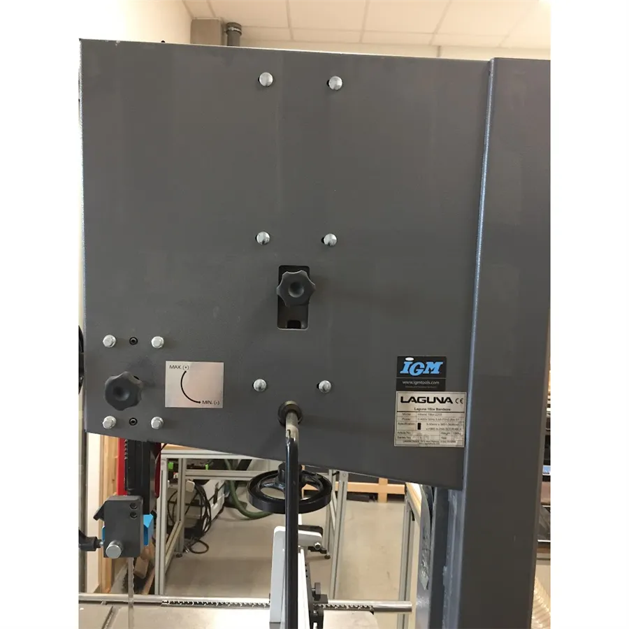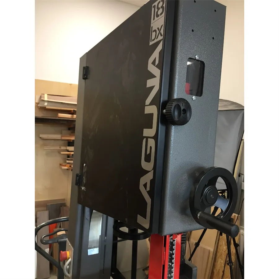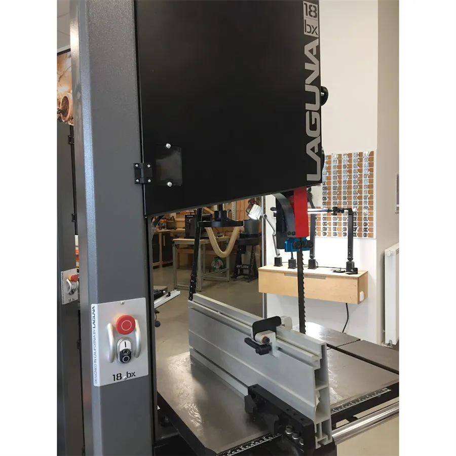Pila je vybavena odolnými keramickými vodítky pilového pásu nad i pod stolem. Keramická vodítka poskytují velmi přesné vedení, zaručují ideální kvalitu řezu a prodlužují životnost pilového pásu. Průhledy v horní části stroje vám umožní kontrolovat napnutí nebo uvolnění pásu za chodu, nebo případné sjíždění pásu z kola. Praktickým prvkem je také páka na zadní straně pily pro rychlé uvolnění pásu. Pila IGM Laguna 18BX se odlišuje proti konkurenci především promyšlenou konstrukcí, která umožňuje extra vysoký řez až 410 mm.