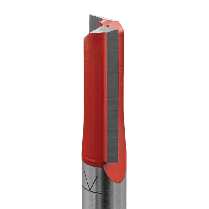Sytě červený teflonový povlak PTFE na povrchu frézy chrání nástroj před korozí, snižuje tření a zvyšuje odolnost proti napalování třísek, lepidel a pryskyřic. Díky povlaku tak fréza zůstává čistá a zachová si ostří po delší dobu než obyčejné frézy.