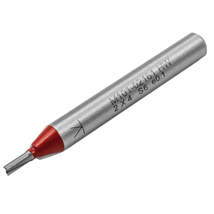 Tato fréza M101 má zuby i tělo nástroje vyrobené z tvrdokovu (HWM), což jí zajišťuje vysokou tuhost a přesnost. Je ideální pro přesné výřezy tenkých materiálů nebo frézování přesných drážek s malým rádiusem. Není určená pro zavrtávání do plochy materiálu. Při použití v CNC frézce lze najet do plochy materiálu postupným zanořením.