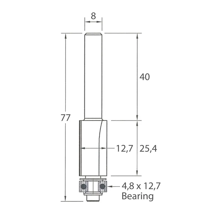 IGM M106 Ořezávací fréza - D12,7x25,4 L77 S=8 HW