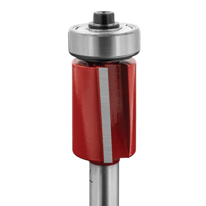 Ořezávací fréza M107 se dvěma šikmými zuby z tvrdokovu a kopírovacím ložiskem je určená pro ořezávání podél šablony upevněné pod obráběným materiálem, zejména pro frézování zakřivených tvarů. Lze použít pouze v ručních frézkách.