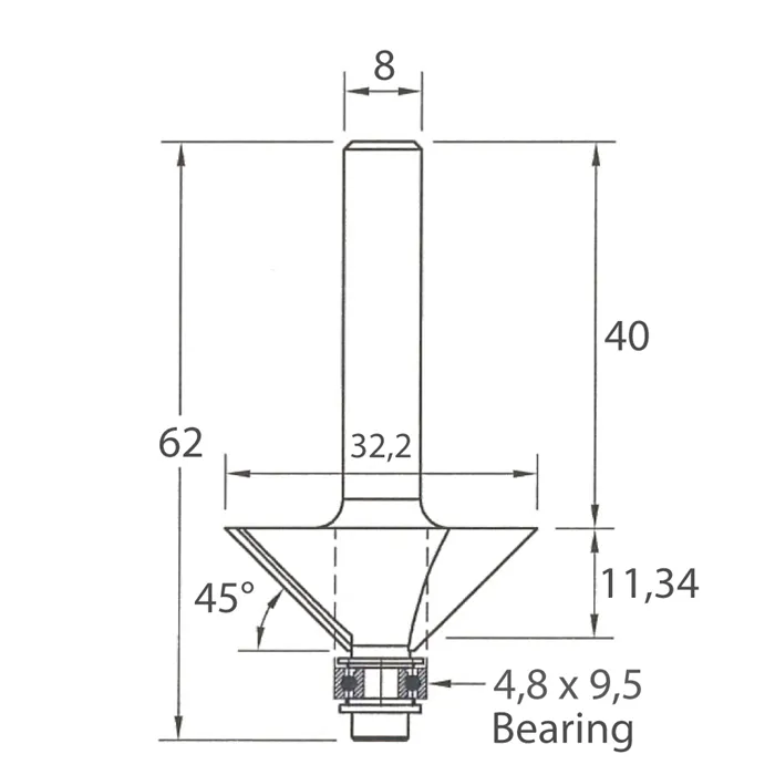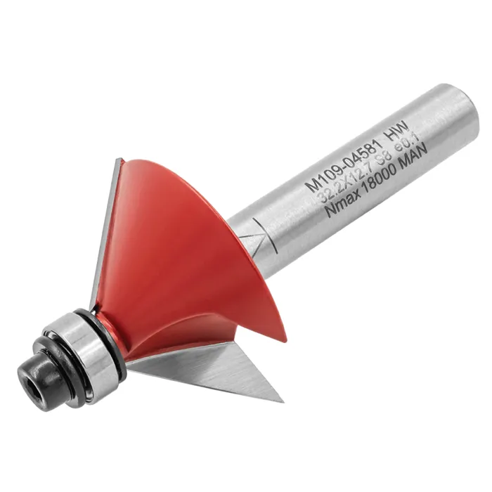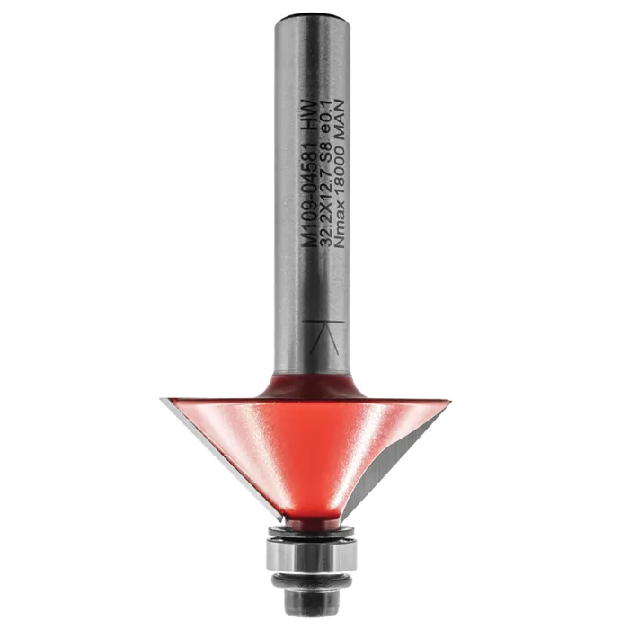 Úhlová fréza M109 se dvěma zuby z tvrdokovu a kopírovacím ložiskem je určená pro ořezávání podél hrany materiálu. Lze použít pouze v ručních frézkách.