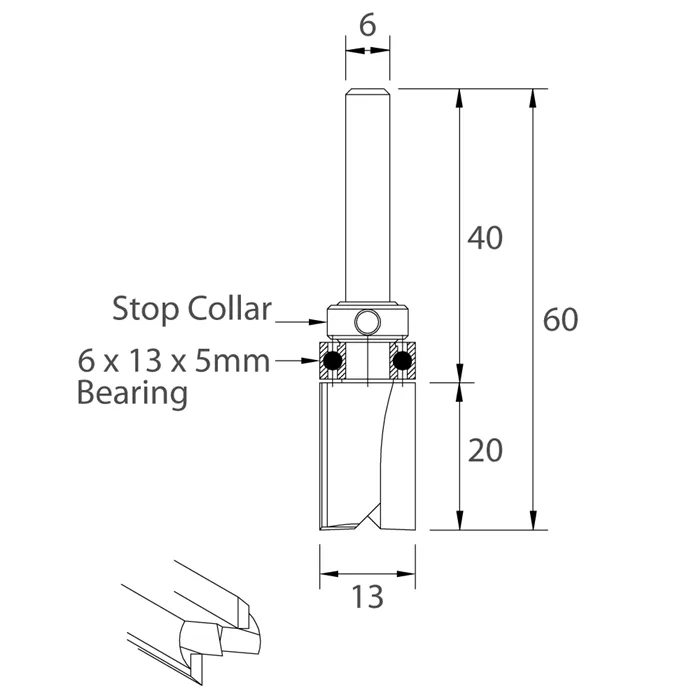IGM M112 Drážkovací fréza s ložiskem - D13x20 L60 S=6 HW