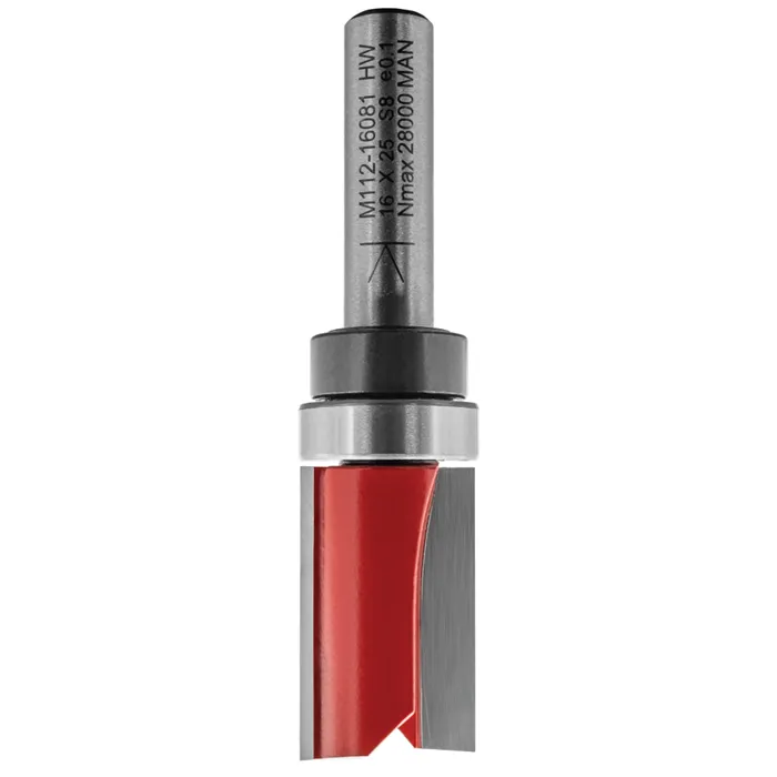 Drážkovací fréza M112 se dvěma zuby z tvrdokovu a ložiskem je určená pro ořezávání a drážkování podél šablony upevněné nad obráběným materiálem. Lze použít pouze v ručních frézkách.