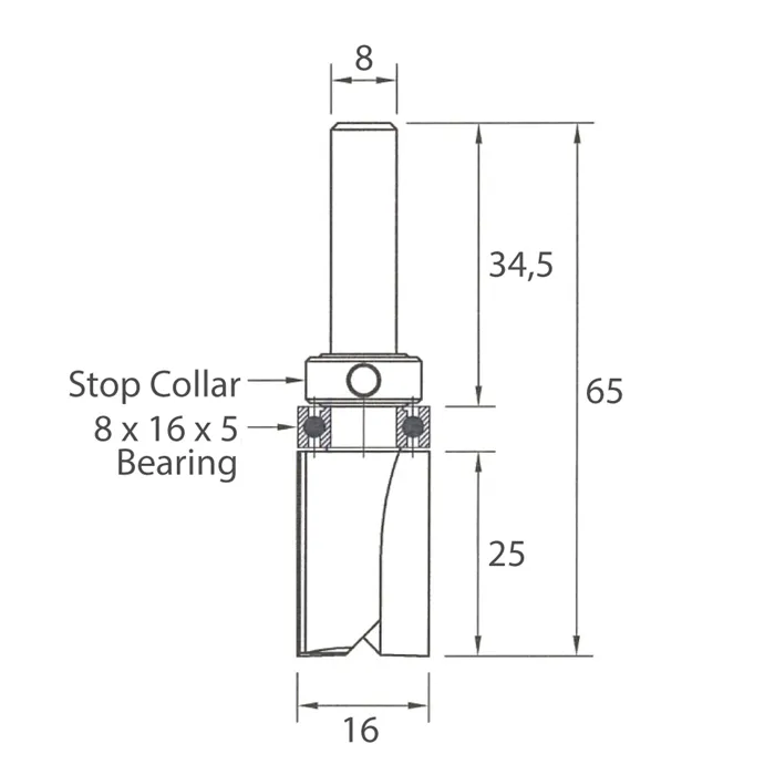 IGM M112 Drážkovací fréza s ložiskem - D16x25 L65 S=8 HW