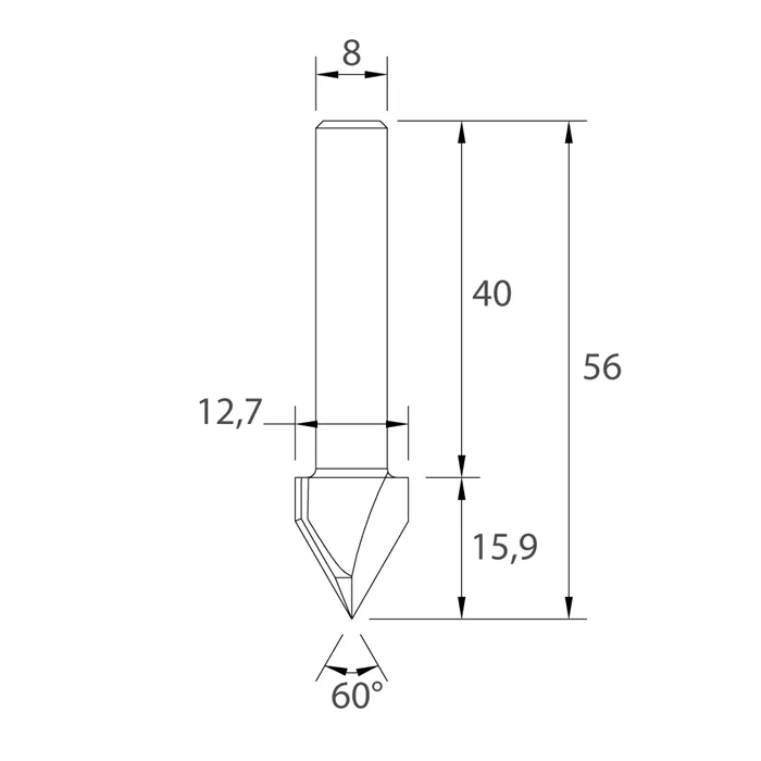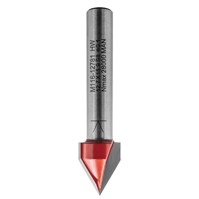 Popisová fréza 60° M116 se dvěma zuby z tvrdokovu je určená pro frézování jemných drážek a řezů s přesností laseru, vytváření nápisů a popisů s různou hloubkou řezu na dřevě nebo dřevěných materiálech. Lze použít v ručních i CNC frézkách.