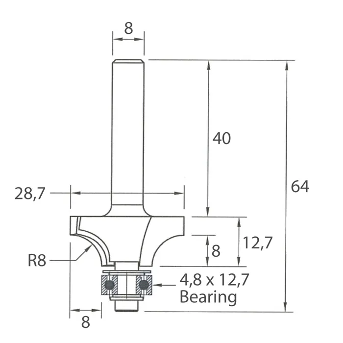 Můžete s ní vytvořit ozdobné zakončení hrany masivního dřeva nebo zaoblit nábytkovou ABS hranu po olepování. Ložisko na konci nástroje zajišťuje prvotřídní vedení a kvalitní a rovnoměrný úběr materiálu.