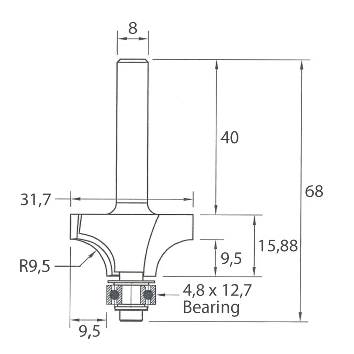 Můžete s ní vytvořit ozdobné zakončení hrany masivního dřeva nebo zaoblit nábytkovou ABS hranu po olepování. Ložisko na konci nástroje zajišťuje prvotřídní vedení a kvalitní a rovnoměrný úběr materiálu.