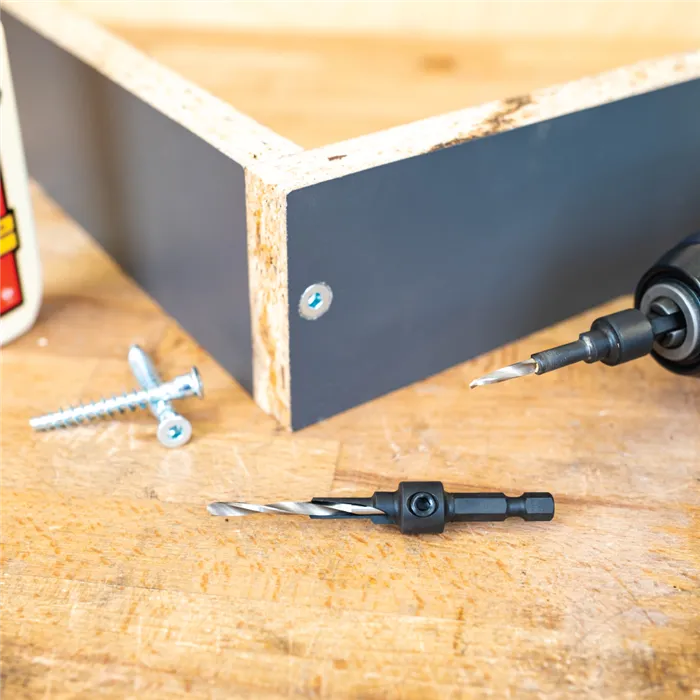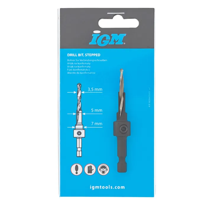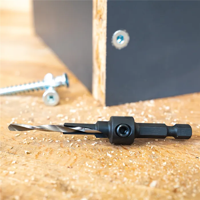 Vrták pro vrtání otvorů pro spojovací šrouby - Konfirmat, Directa atd.Vrták HSS s pozvolnou spirálou, záhlubník SP.Speciální tepelná úprava pro delší životnost.Šestihranná rychloupínací stopka.