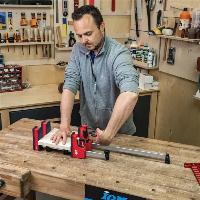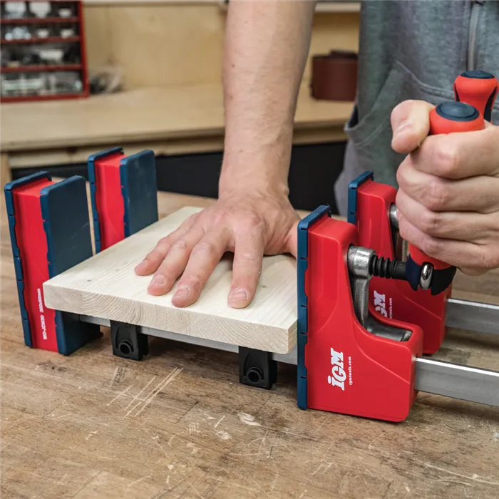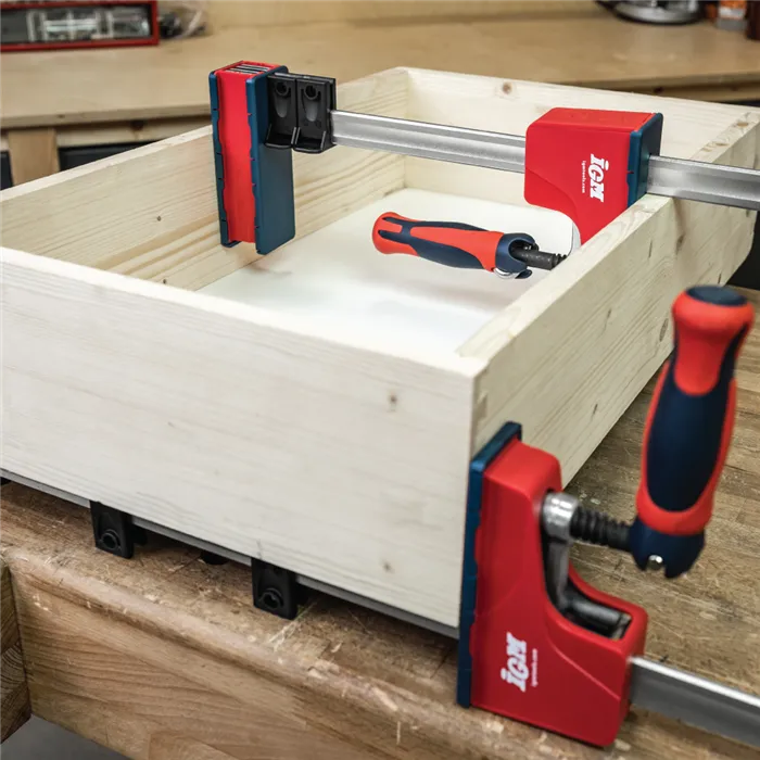 IGM MD Korpusové svěrky pro střední zátěž jsou určené především pro stahování lepených korpusů, lze je ale využít i pro stahování a rozpínání jakéhokoli materiálu. Díky jejich menší velikosti oproti HD korpusovým svěrkám je oceníte při stahování menších a středních dílců. Pogumovaná výklopná rukojeť, díky které jednoduše dosáhnete vysoké upínací síly až 460 kg, umožňuje pevně stáhnout korpus, zatímco lepidlo vytvrzuje. Vodicí tyč je vyrobena z pozinkované oceli tažené za studena a je výrazně profilovaná pro minimalizaci prohýbání.