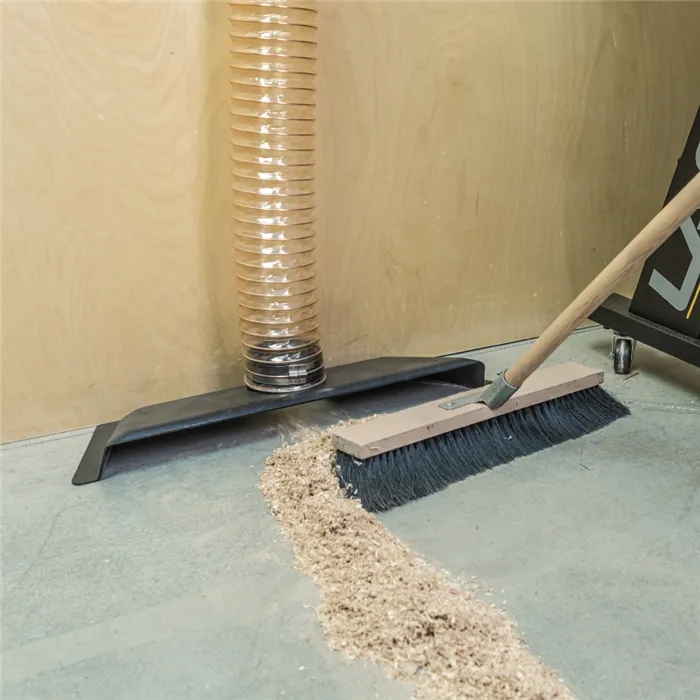 Odsávací koncovka na podlahu je levné řešení odsávání, čištění a úklidu na podlaze. Koncovka je navržena speciálně pro malé dílny nebo ke strojům, které nemají vlastní odsávání a třísky padají volně za zem. Koncovka funguje jako sběrné místo, ke kterému je třeba odpad namést. Koncovka se snadno připevní k podlaze oboustrannou lepicí páskou a napojí na odsávací hadici průměru 100mm.