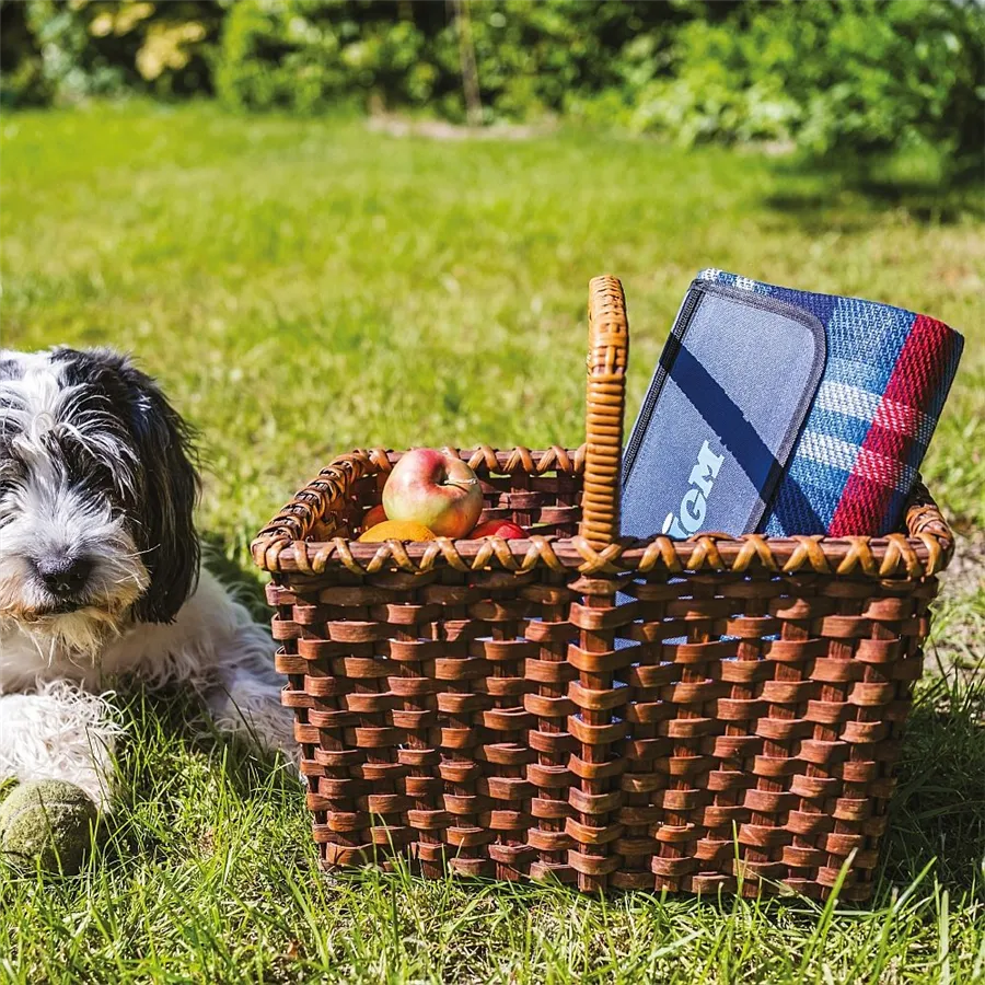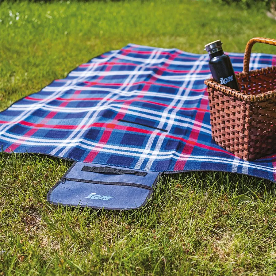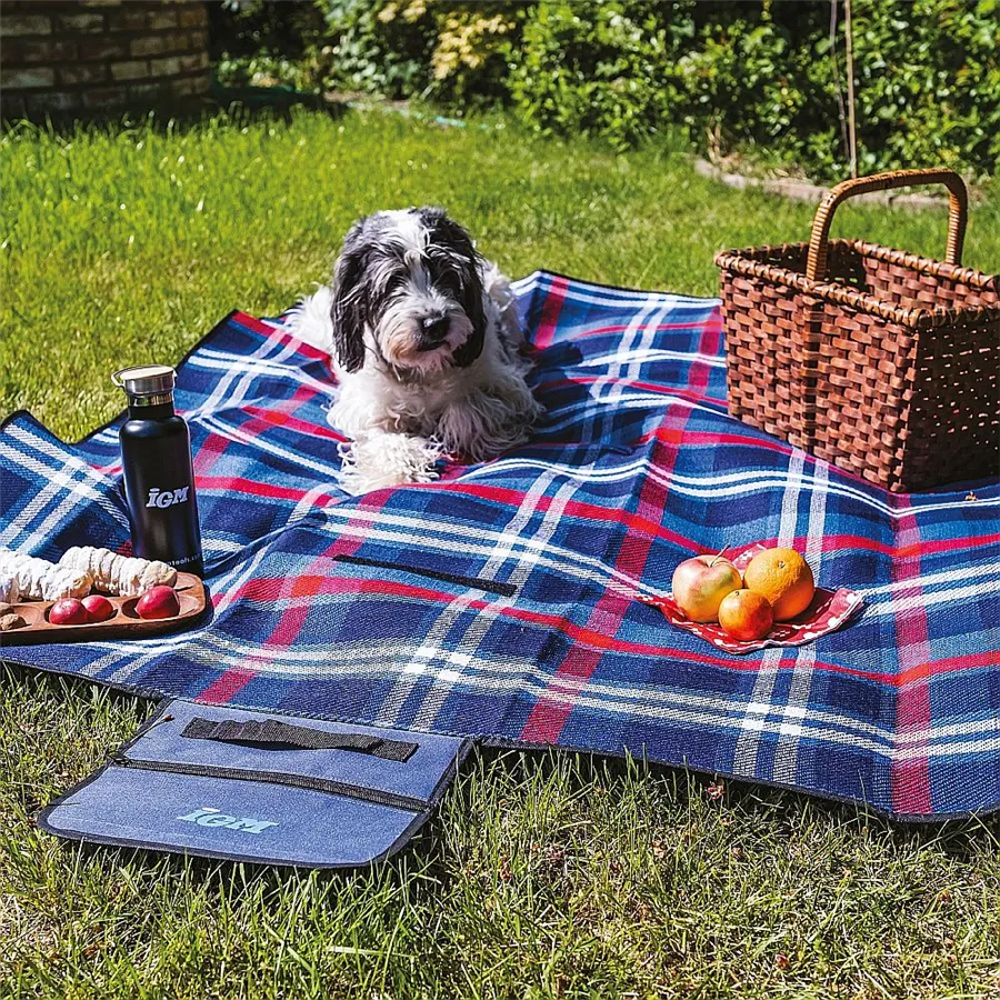 Deka na piknik s nepromokavou úpravou na spodní straně. Deku je možné složit a zavřít pomocí klopy, na které je umístěna jedna malá kapsa na zip a poutko pro přenášení v ruce.