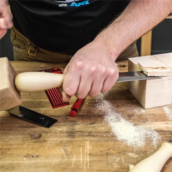 • Kovaná čepel z vysoce legované oceli s tvrdostí 60 HRC.• Vysoce leštěný povrch oceli pro snadný skluz po materiálu.• Hrana ostří zbroušená pod 25° úhlem.• Úzce vybroušené boky usnadňují práci v rozích a rybinách.• Ručně leštěná a pastovaná rukojeť z odolného habrového dřeva.Vynikající ploché dláto značky IGM je vhodné pro truhláře, kteří ocení kvalitu a tradiční zpracování. Je určeno na dlabání ostrých rohů, ozubů, rozporů a čepů. Jemně vybroušená, leštěná čepel je kovaná z kvalitní vysoce legované oceli s tvrdostí 60 HRC. Proto oproti běžným dlátům zůstává dlouho ostrá. Hranu ostří zbroušenou pod 25° úhlem vyžaduje před prvním použitím honování pro dosažení mimořádné ostrosti. Také doporučujeme provést 30° mikro nábrus na hraně ostří pro prodloužení výdrže ostří. Úzké, zbroušené boky čepele jsou ideální pro práci v těsných prostorách, zvláště při výrobě čepů a rybin. Rukojeť dláta je vyrobena z kvalitního a houževnatého habru, který odolá i silným úderům paličkou. Rukojeť je ručně najemno leštěná a pastovaná s originálním ergonomickým tvarem, který příjemně padne do ruky. Dláto je velmi odolné proti nárazům, protože je čepel usazena v pevné habrové rukojeti s koženým kroužkem pro tlumení nárazů a zděří z nerezové oceli. To oceníte zvláště při tvorbě dlabů pomocí paličky. Ploché dláto IGM je zkrátka jedinečný nástroj, který Vám vydrží celé generace.Vyrobeno v České republice.