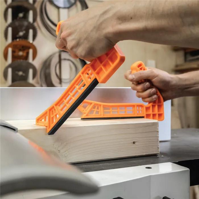 • Spolehlivá pomůcka pro bezpečí každého truhláře.• Pro bezpečný posuv materiálu při obrábění.• Zamezí zpětnému rázu.• Protiskluzová spodní část a ergonomické rukojeti.• Dva podavače pro obě ruce.