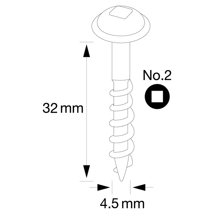 Tyto Pocket Hole Vruty jsou určené pro použití se svrtávacími přípravky IGM Pocket Hole při vrtání skrytých šroubovaných spojů. Vruty jsou k dispozici s jemným závitem pro tvrdé dřevo nebo s hrubým závitem pro měkké dřevo, v různých délkách - 25 mm, 32 mm, 38 mm, 50 mm a 63 mm. Vruty mají samořezný hrot a talířovou hlavu Robertson č. 2, kromě vrutů 4x25 mm a 3,5x25 mm, které mají válcovou hlavu. Vruty jsou vyrobeny z pozinkované oceli a jsou vhodné pro použití především v interiéru.