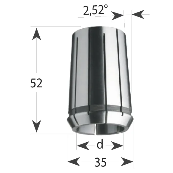 • Kleštinový kužel v kombinaci s dlouhým upínacím otvorem pro silné sevření a tuhost.• Konzistentní silné sevření v celém délce 52mm v rozsahu 0-0,5 mm upínacího průměru.• Navrženo pro všechny druhy složitějších operací s nárokem na přesnost upnutí.• Zaručena dlouhá životnost díky vysoce kvalitní oceli a pečlivému tepelnému zpracování.