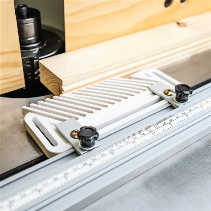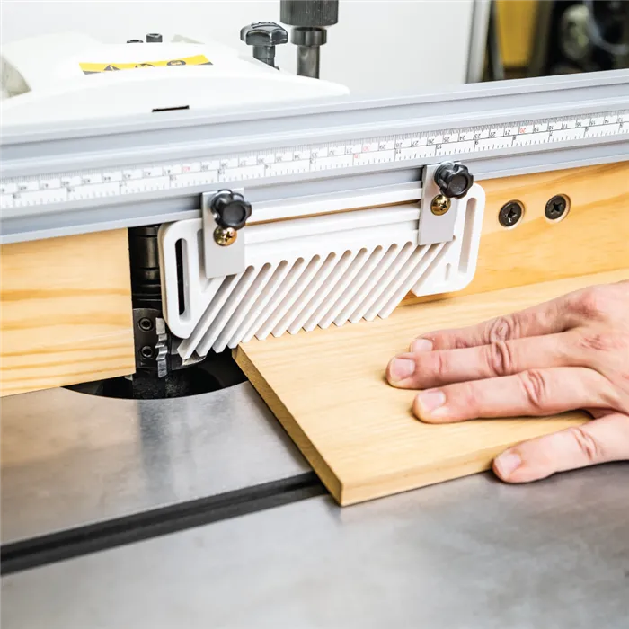 Přítlačný hřeben je určený pro použití s pravítkem s rychloupínáním. Vylepšete si svoji kotoučovou pilu, frézku nebo pásovou pilu a jednoduše upněte pravítko s přítlačným hřebenem ke stolu a veďte bezpečně materiál do řezu. Určeno pro přitlačení dílce k frézovacímu pravítku nebo stolu během frézování na frézovacím stolku nebo řezání na pile. Zabraňuje zpětnému rázu.• Rozměr balení (DxŠxV): 11x28x2 cm• Hmotnost: 0,154 kg
