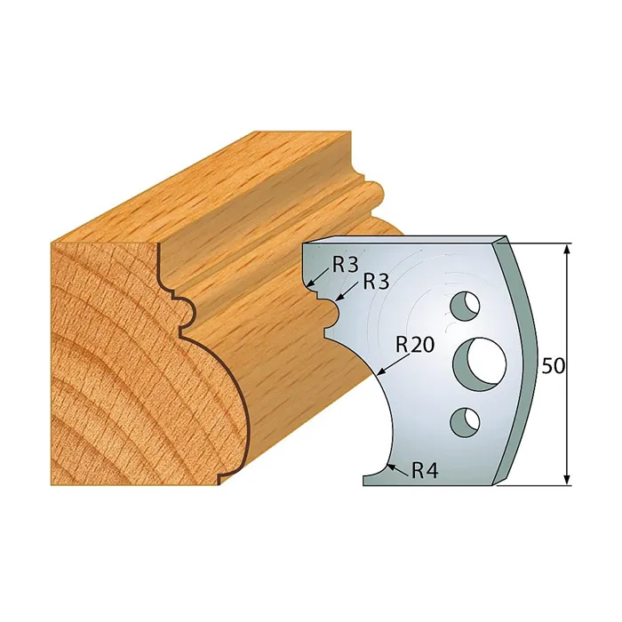 Univerzální profilové nože jsou určené pro univerzální frézovací hlavy s euro upínacím systémem. Díky jednoduchému upínacímu systému, můžete během chvilky změnit profil frézování na své frézovací hlavě. Přesné ustavovací otvory pro kolíky mají průměr 6 mm a jsou v rozteči 24 mm. Dodáváno v páru (2ks), baleno v blistru.