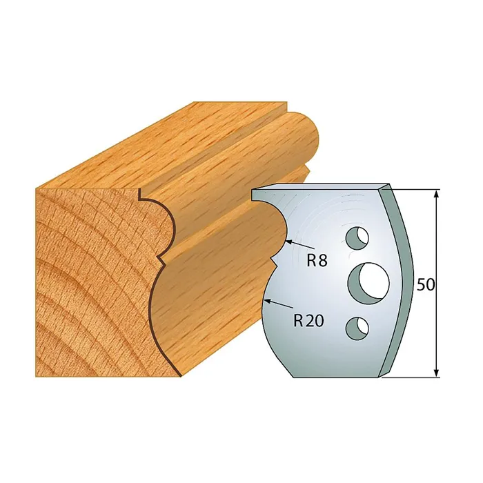 Univerzální profilové nože jsou určené pro univerzální frézovací hlavy s euro upínacím systémem. Díky jednoduchému upínacímu systému, můžete během chvilky změnit profil frézování na své frézovací hlavě. Přesné ustavovací otvory pro kolíky mají průměr 6 mm a jsou v rozteči 24 mm. Dodáváno v páru (2ks), baleno v blistru.