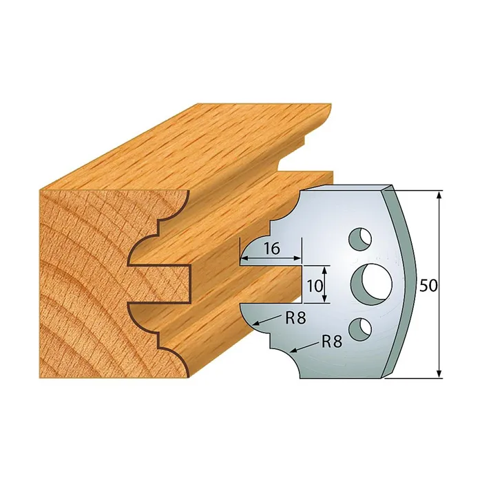 Univerzální profilové nože jsou určené pro univerzální frézovací hlavy s euro upínacím systémem. Díky jednoduchému upínacímu systému, můžete během chvilky změnit profil frézování na své frézovací hlavě. Přesné ustavovací otvory pro kolíky mají průměr 6 mm a jsou v rozteči 24 mm. Dodáváno v páru (2ks), baleno v blistru.