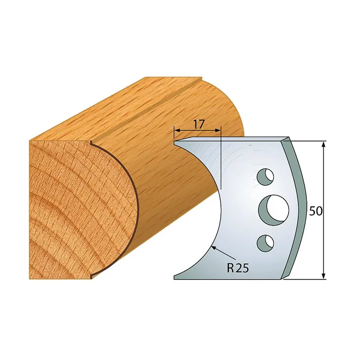 Univerzální profilové nože jsou určené pro univerzální frézovací hlavy s euro upínacím systémem. Díky jednoduchému upínacímu systému, můžete během chvilky změnit profil frézování na své frézovací hlavě. Přesné ustavovací otvory pro kolíky mají průměr 6 mm a jsou v rozteči 24 mm. Dodáváno v páru (2ks), baleno v blistru.