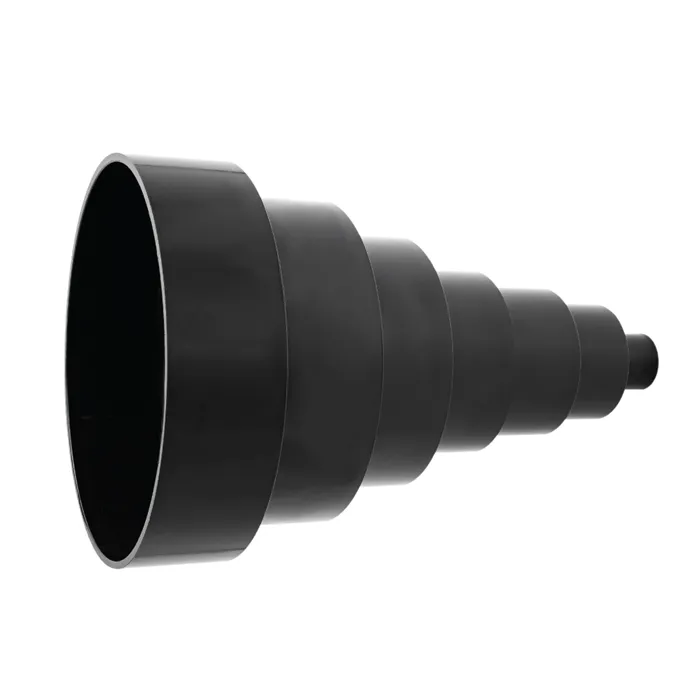 Redukční koncovka je díky sedmi různým velikostem vhodná pro připojení široké škály zařízení nebo elektronářadí, které byste složitě připojovali na odsávací zařízení. Jednoduše vyříznete potřebnou sekci redukce. Na vyříznutí budete potřebovat pilu s jemnými zuby. Redukce nabízí průměry 25, 50, 63, 75, 100, 125 a 150 mm (uvedené rozměry jsou vnější průměry).