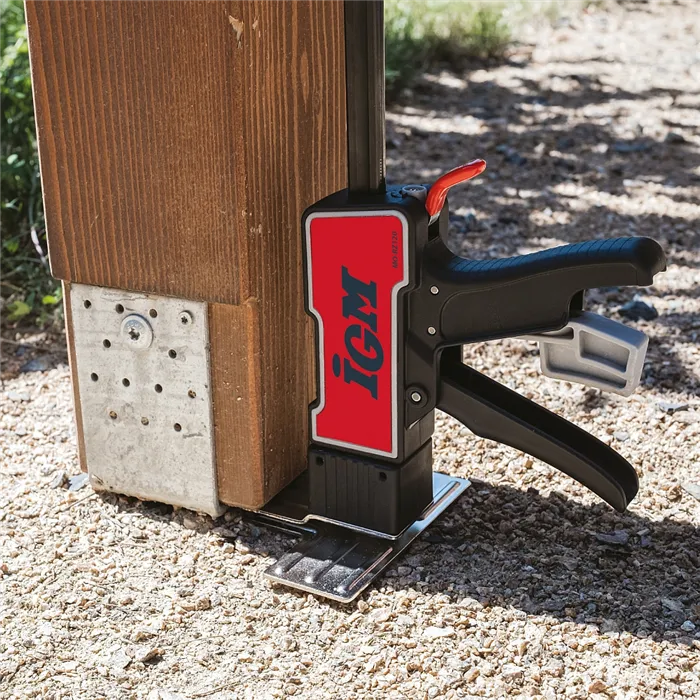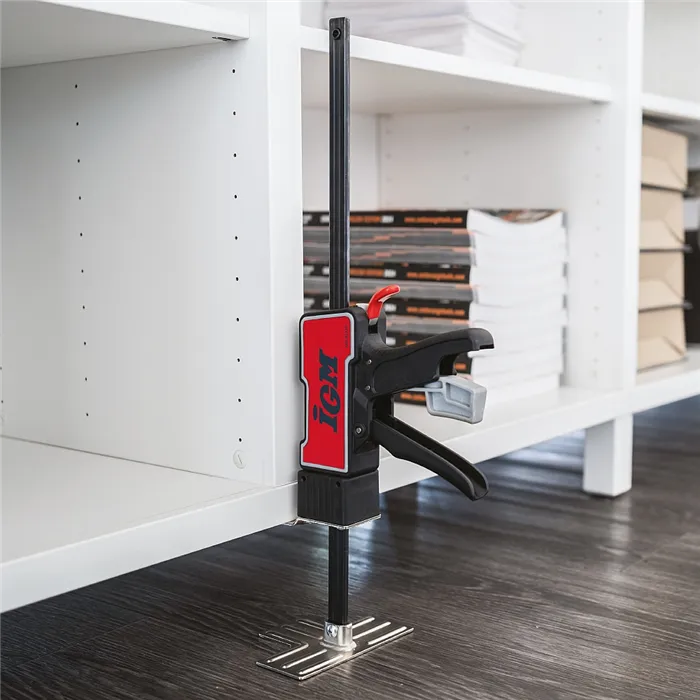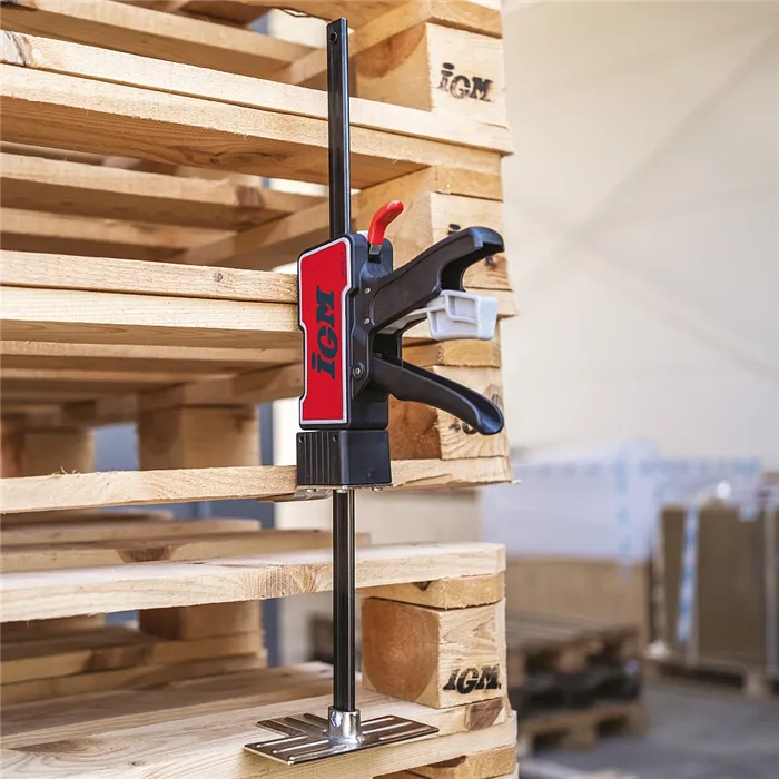 IGM Ruční zvedák je všestranný nástroj,který najde využití při jakémkoli druhu práce.S nosností 120 kg vám pomůže vyrovnat spotřebiče a zvednout těžký nábytek nebo stavební materiál jako trámy či sádrokartonové desky do výšky až 310 mm.Zvedák můžete ovládat pouze jednou rukou,což se hodí při instalaci oken,dveří a kuchyňských korpusů,kdy běžně potřebujete druhou ruku pro přidržení dílce.Po montáži základny na opačnou stranu vodicí tyče lze využít i jako svěrka pro upínání.Zvedák můžete použít i pro rozpínání například při montáži podlah.Stisknutím červené páčky se zvedák rychle spustí.Pokud potřebujete materiál spustit postupně a hlavně opatrně,využijete šedou páčku pro pozvolné spuštění.